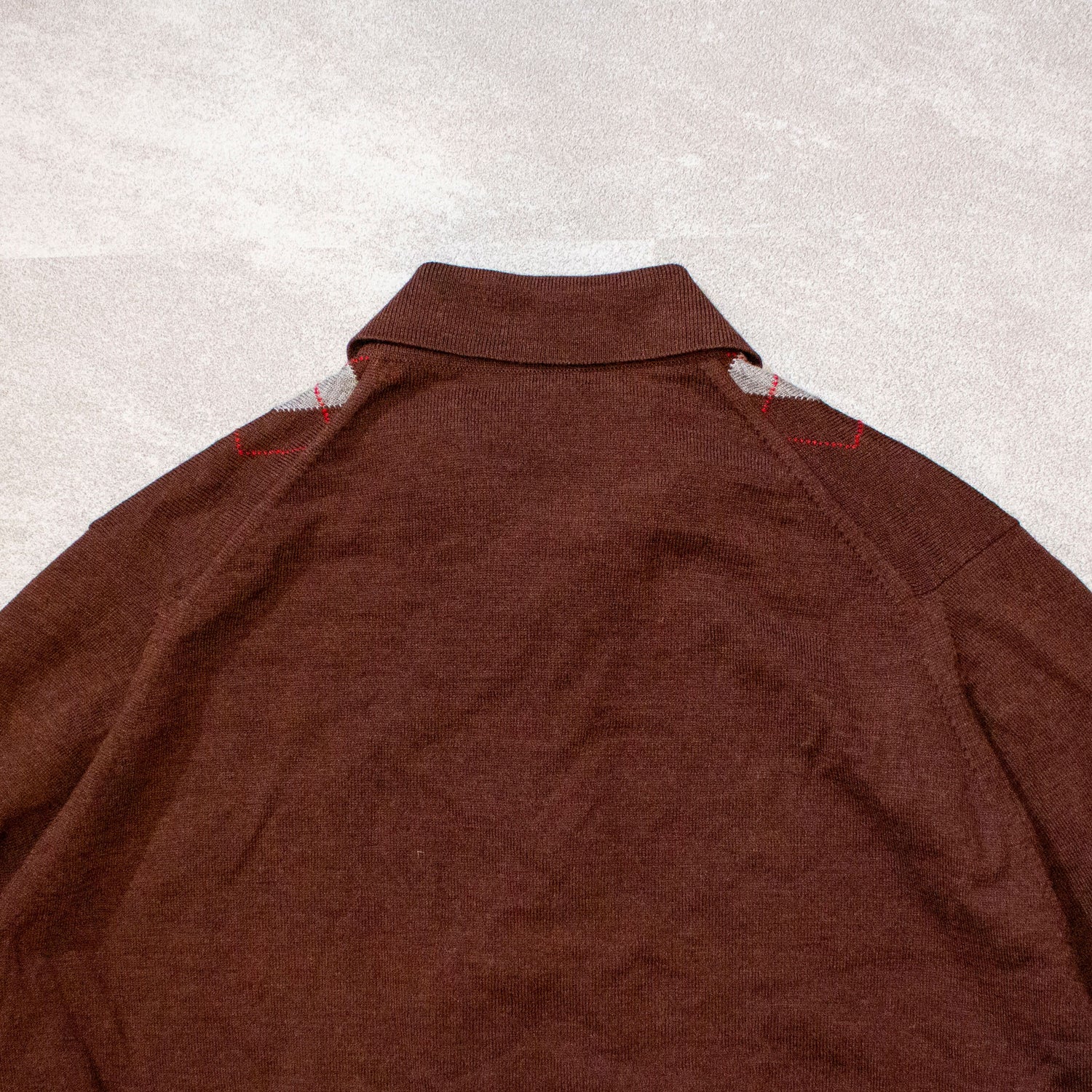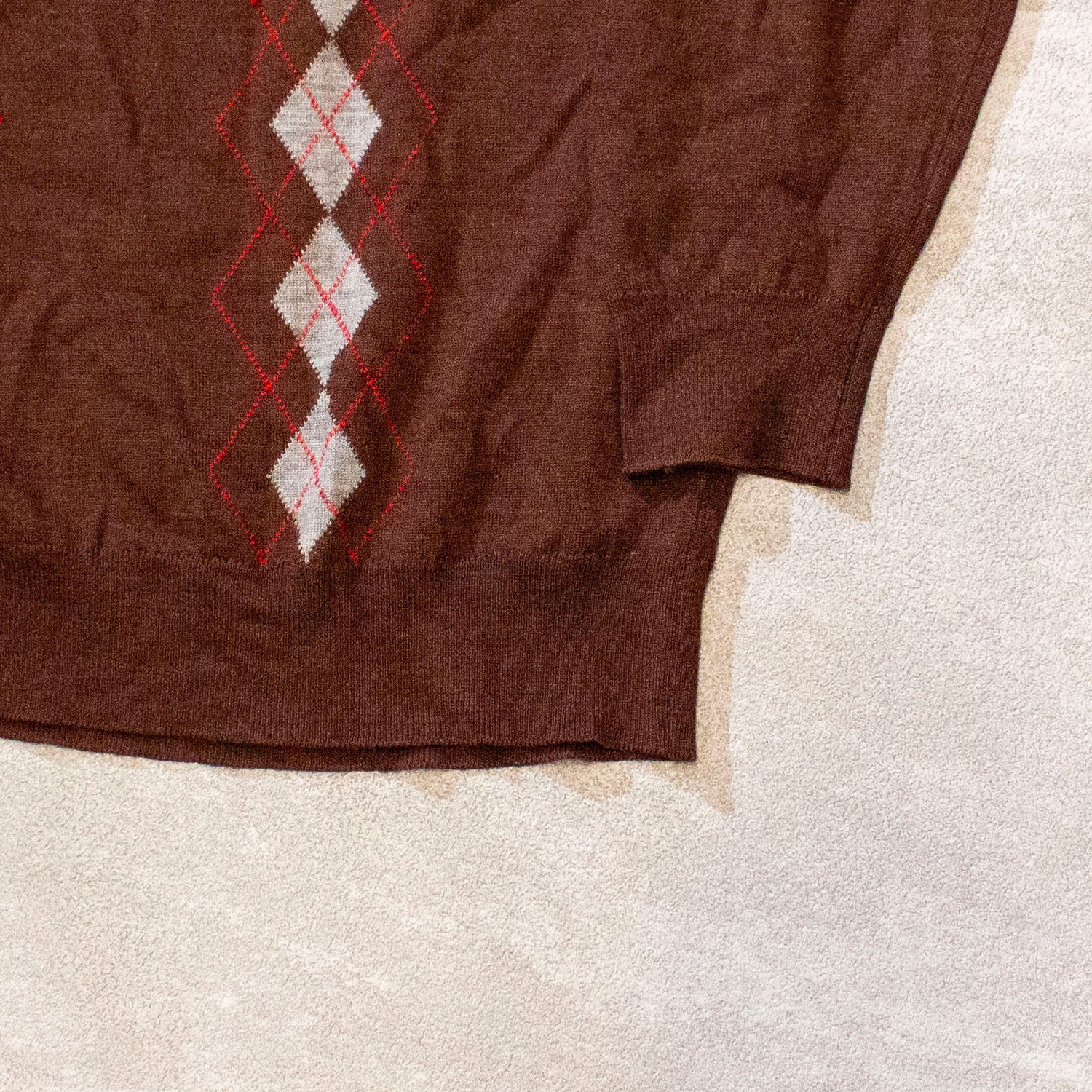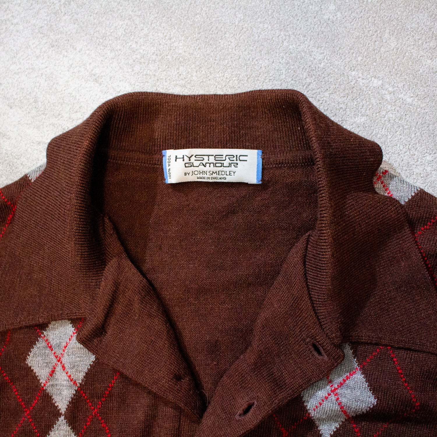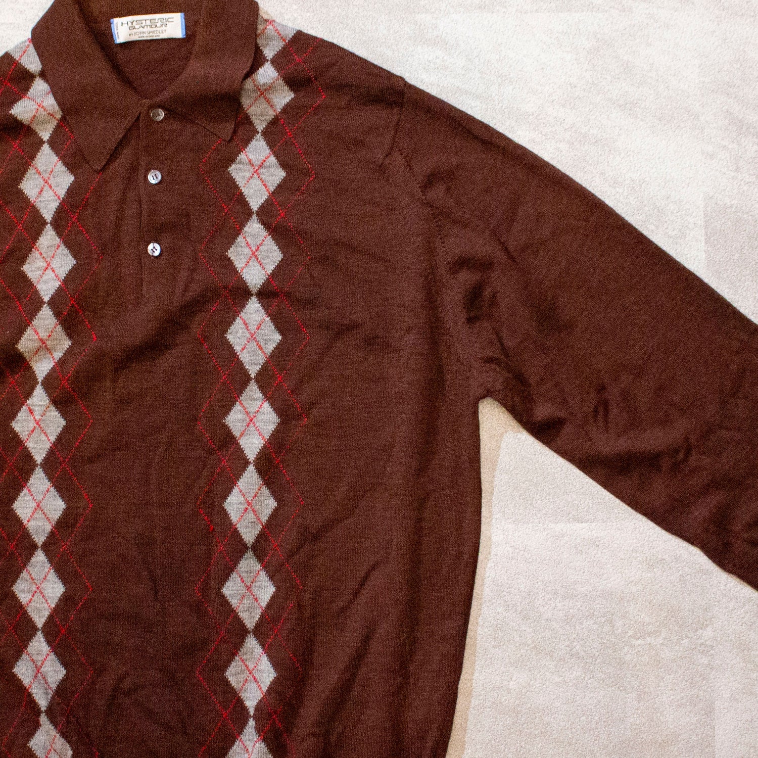 An unexpected collaboration between Hysteric Glamour, which was hugely popular in the 00s, and a traditional British knitwear brand. The traditional argyle pattern is in subtle lines, giving it a slightly grunge feel. I think it's really cool that John Smeg has done this. The material is a high-gauge wool knit that is very comfortable to wear. The material is soft, so you can wear it over a T-shirt without it feeling itchy. The tag also has a special feel to it. It's a piece that you can wear or just look at.