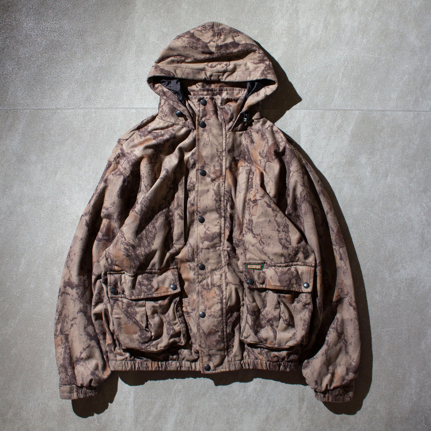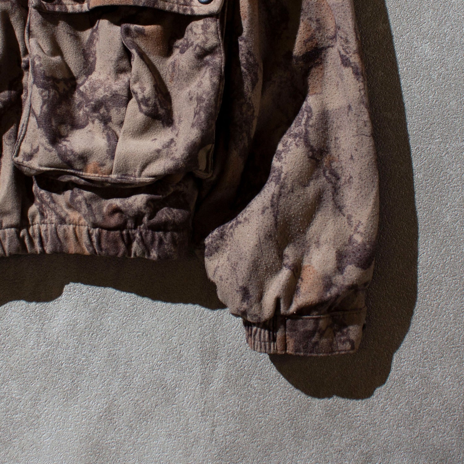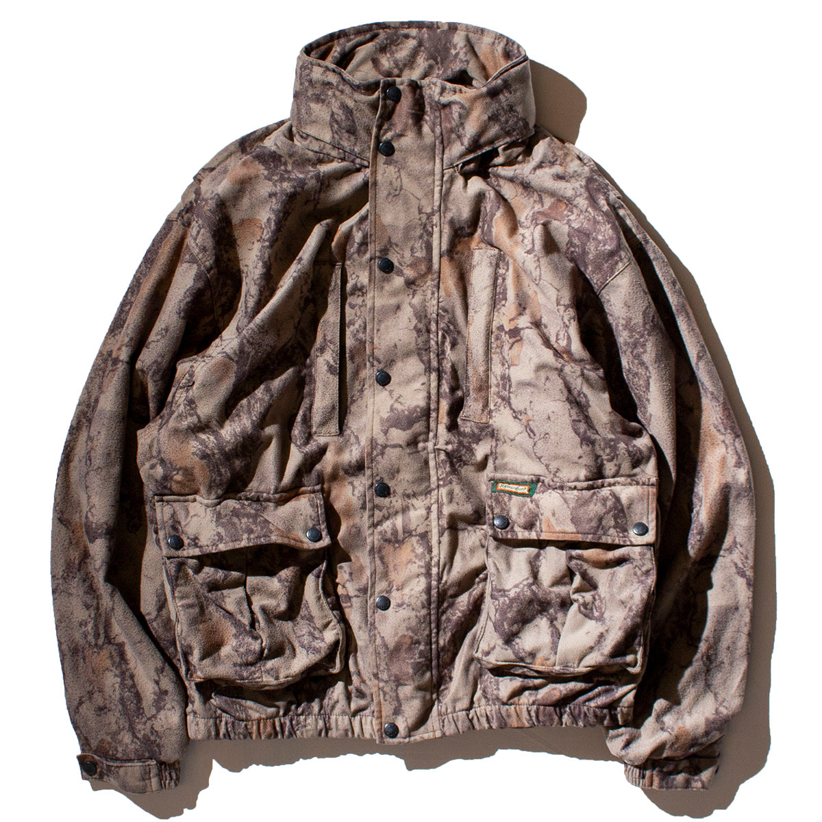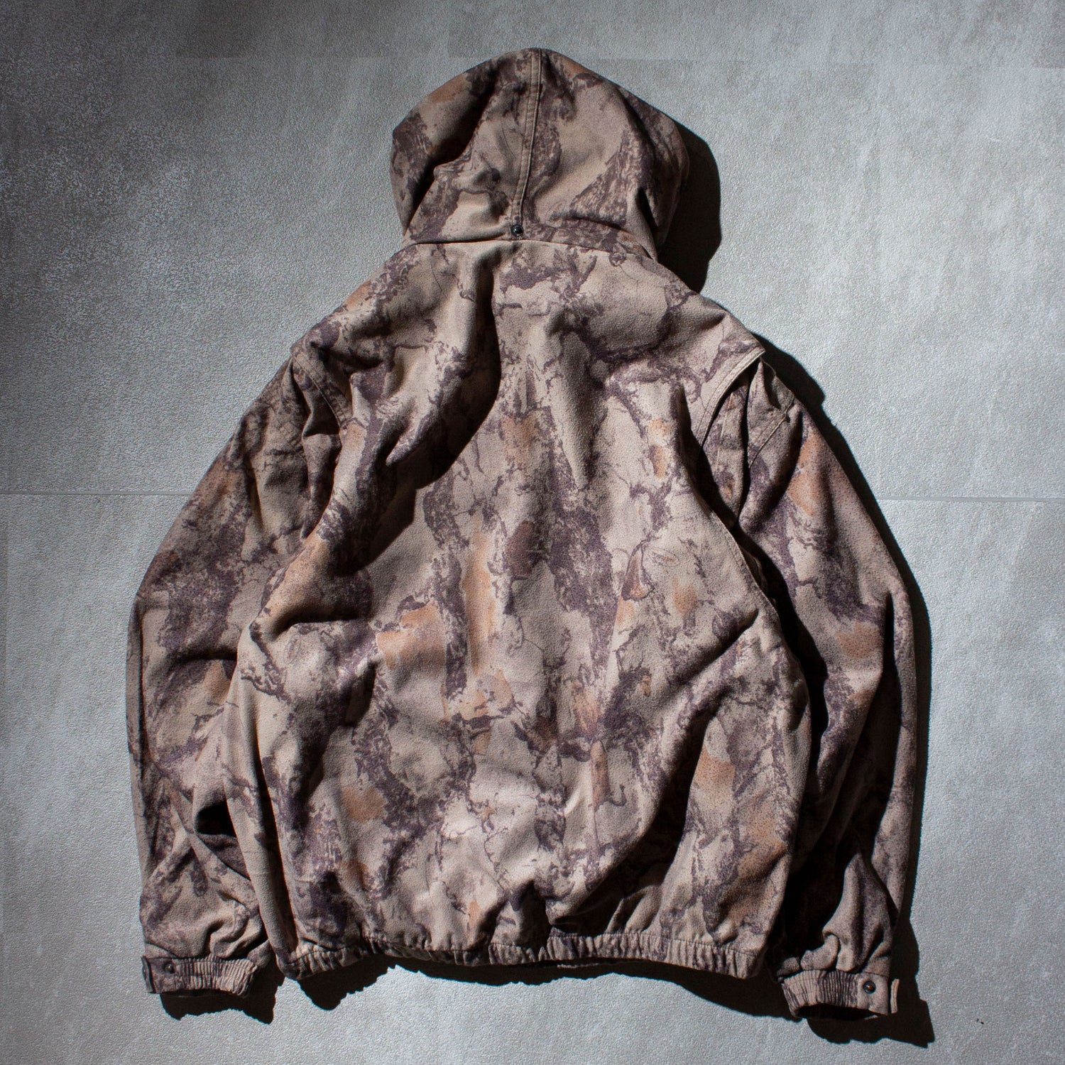 ・NATURAL GEAR tree camo fabric・Brushed polyester material・Back action pleats・Roomy overfitting・Short length that's not too short・Hood can be stored away・2 hand warmer pockets, 2 flap pockets,