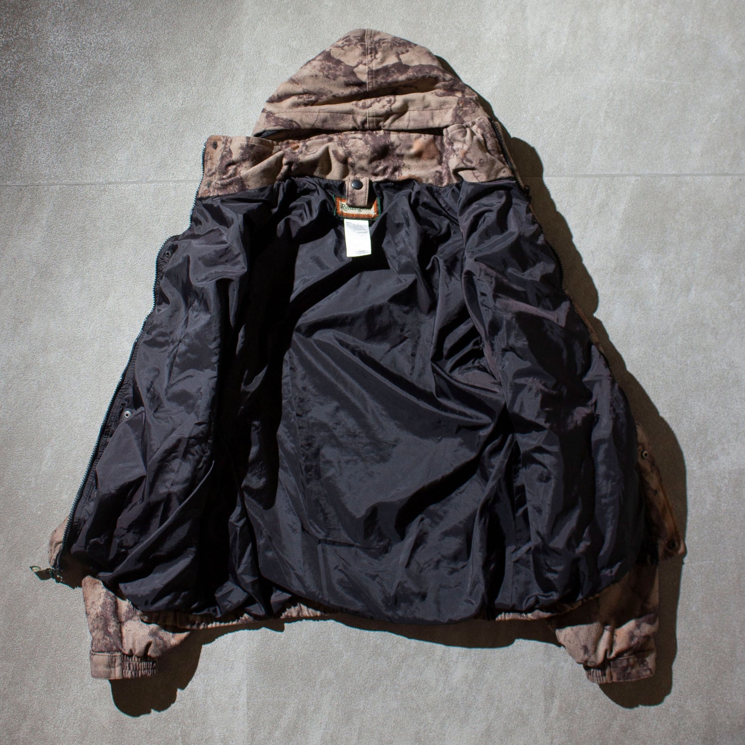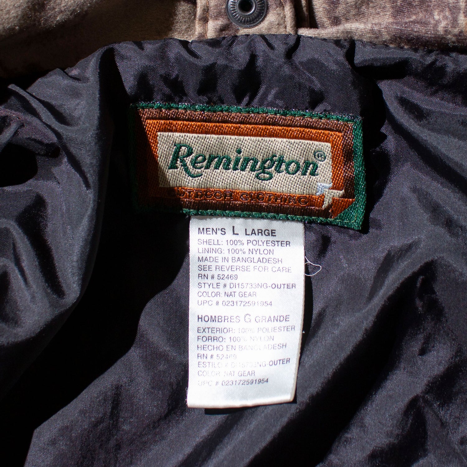 This is a tree camo blouson from Remington, an American firearms manufacturer. This brand makes outdoor products such as hunting and fishing wear, and is famous in Japan for its air guns. This tree camo made by NATURAL GEAR is not too flashy, so I think it is quite easy to wear as street wear. I was personally looking for this blouson for a while, and even when I found it, most of the sizes were XL or larger. If it's too big, it just looks like a boy wearing old clothes, but if you wear it just right, it gives off a stylish look. The fabric is wrinkle-resistant and not bulky, so it would be nice to fold it compactly and put it in your bag. The sleeves can be tightened with snaps, so I think it would look good even if a petite woman wore it oversized.