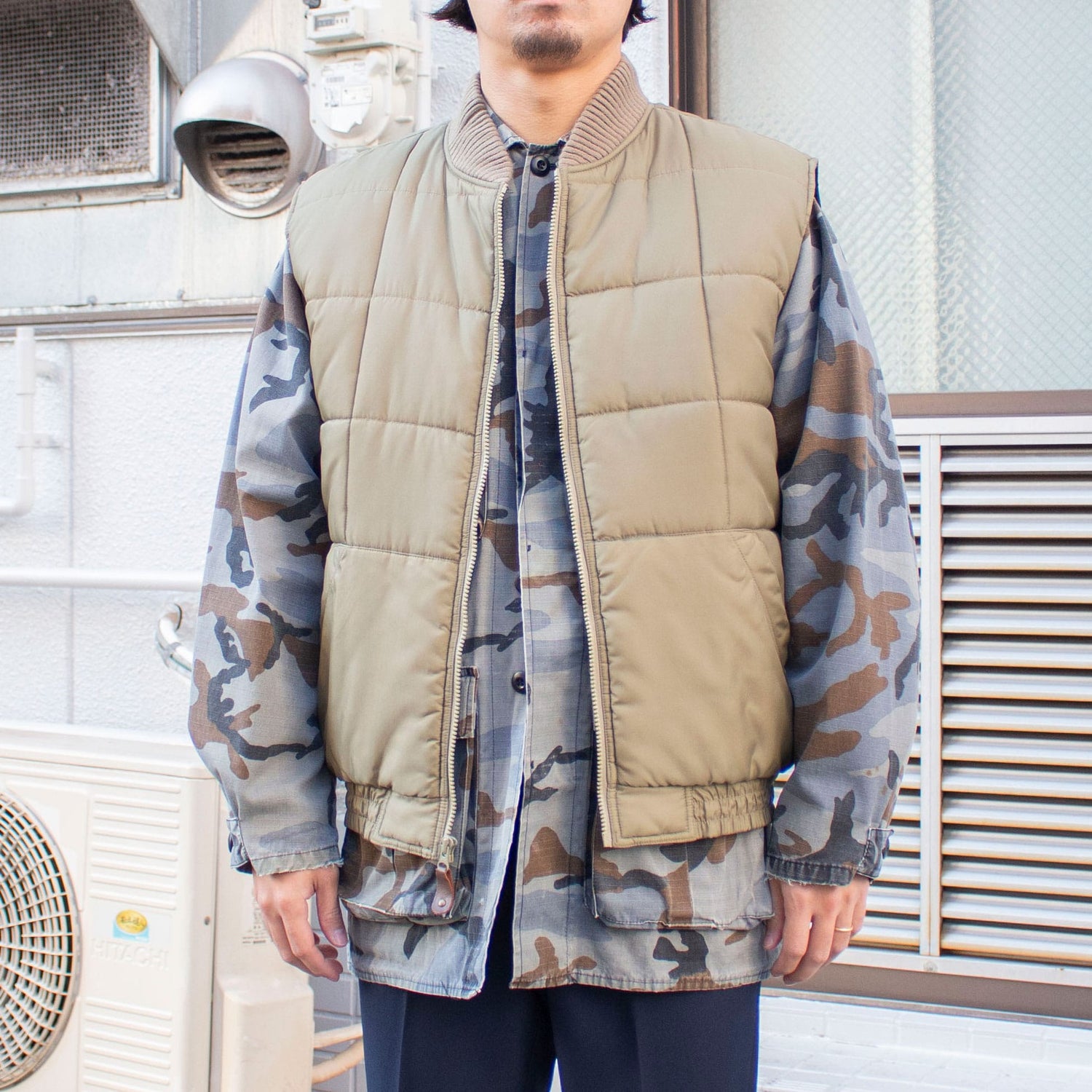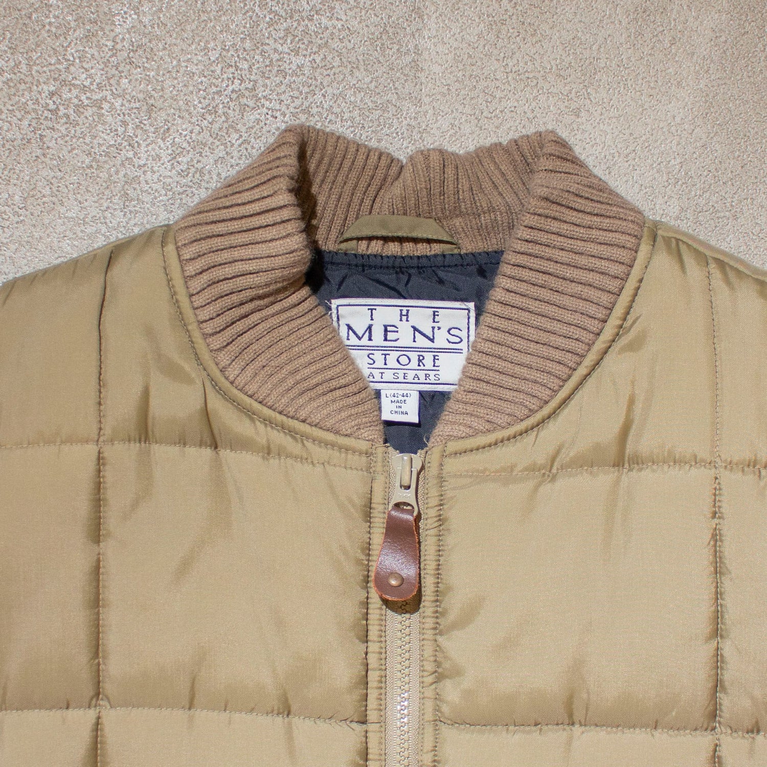 A down vest from Sears' private brand Fieldmaster. Eddie Bauer's classic Canadian vest style. With a ribbed collar that makes it easy to layer and a compact size, it can also be used as an inner layer for coats and other outerwear. It's full of down, but it's light to wear. I really like the solid silver-gray color.
