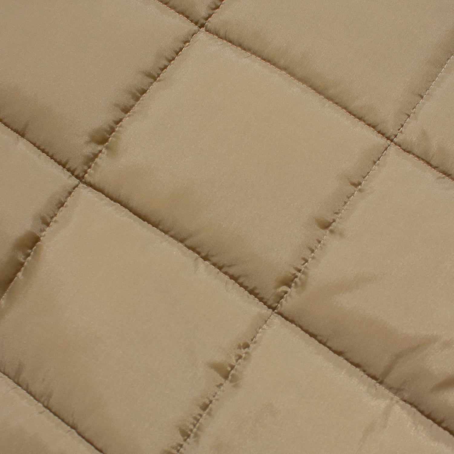 - Slightly stiff nylon fabric - Down filling - Nylon lining - Grid quilting - Just fitting - Short length - 2 hand warmer pockets
