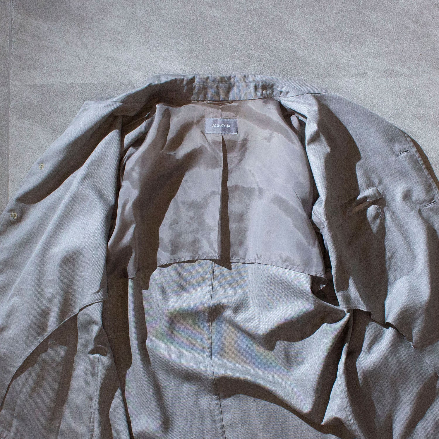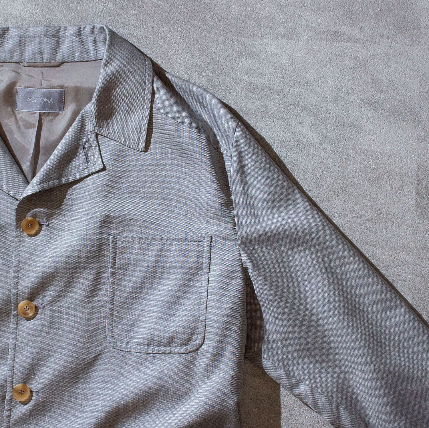 そんなアニオナの90年代頃のカバーオール。贅沢にシルクで仕立てたスーツ生地をカバーオール風にカジュアルダウンしている一着。スーツなども作っているブランドだけあり驚くほど綺麗なシルエットです。当時の定価で15万位するのではないでしょうか、、 あまり気取らずプリントTにワークパンツくらいでラフに合わせたい一着。もちろんカチッとシャツにスラックスでもハマります。