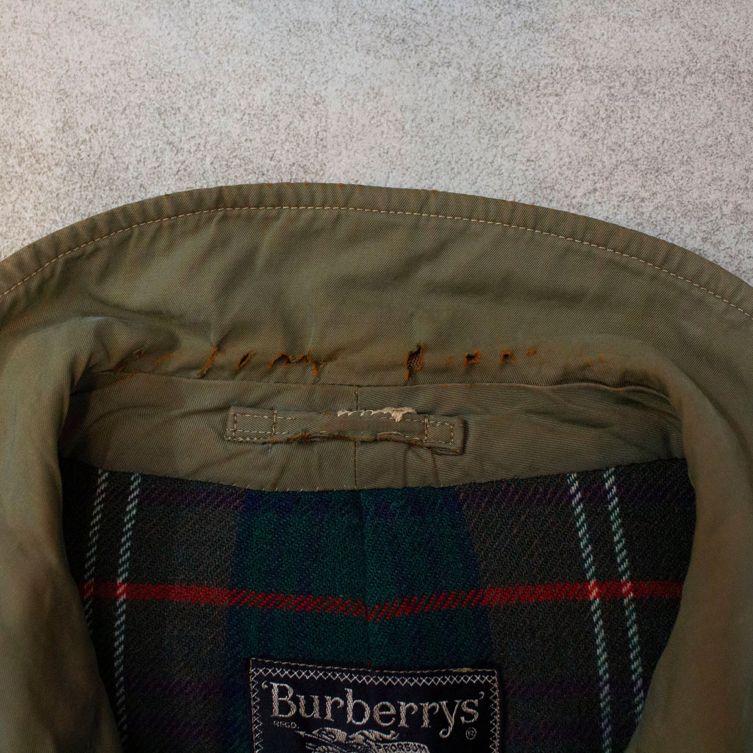 通常のシンプルな2ポケットタイプではなく4ポケットタイプで通常タイプのものよりカジュアルに着用できて、手ぶらでも安心の収納数です。ポリ混の生地も軽くていいんですがVINTAGEのバーバリーを着るならコットン100%を着用したいです。