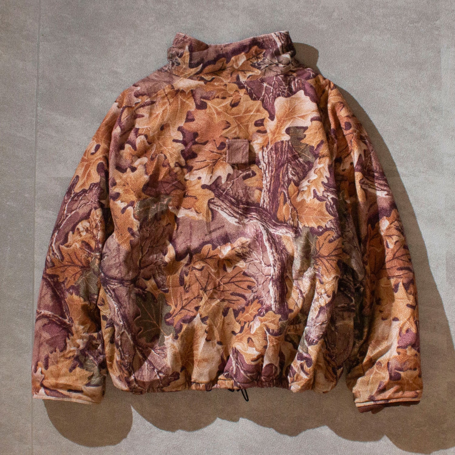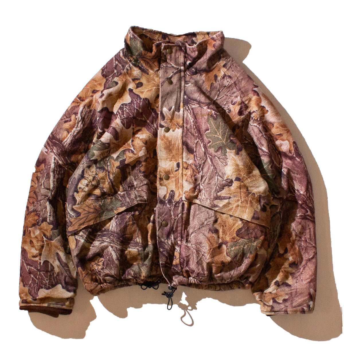 ここ最近いろいろなストリートブランドがサンプリングしているリアルツリーカモのブルゾン。ハンティングブランドらしいリアルツリーカモ。ゆったりした肩幅に身幅もたっぷりと取られているのでインナーにたくさん着込めます。毛足の短い薄手のフリース素材に薄手の中綿でしっかり秋冬仕様です。着丈短めのすっきりした丈感で太目のパンツとの相性も抜群です。袖の内側にリブ付きなので風の侵入も防いでくれます。