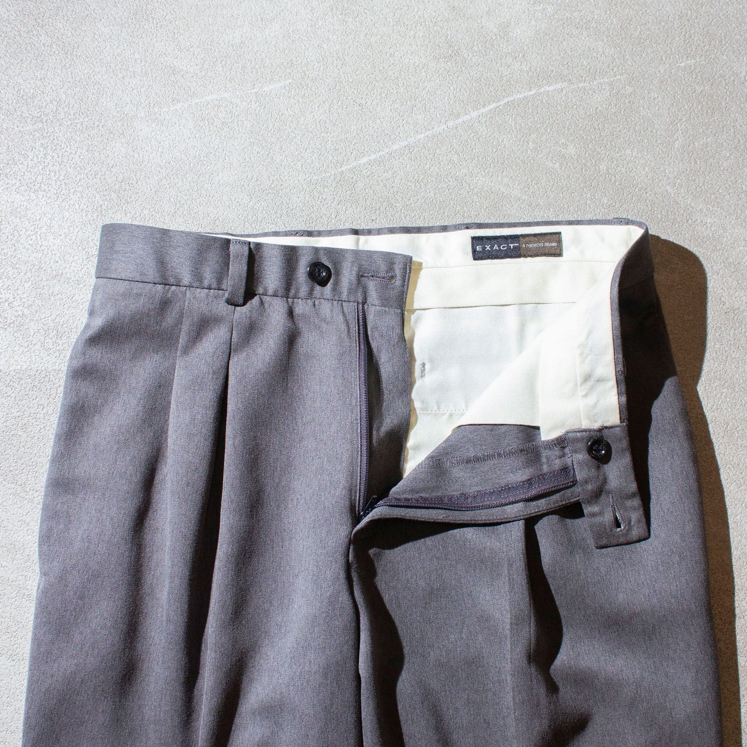 ドッカーズから"EXACT"というモデルのスラックス。詳細は不明ですがDockersブランド内のモデル名かサブブランド名として使用されていたと推測できます。