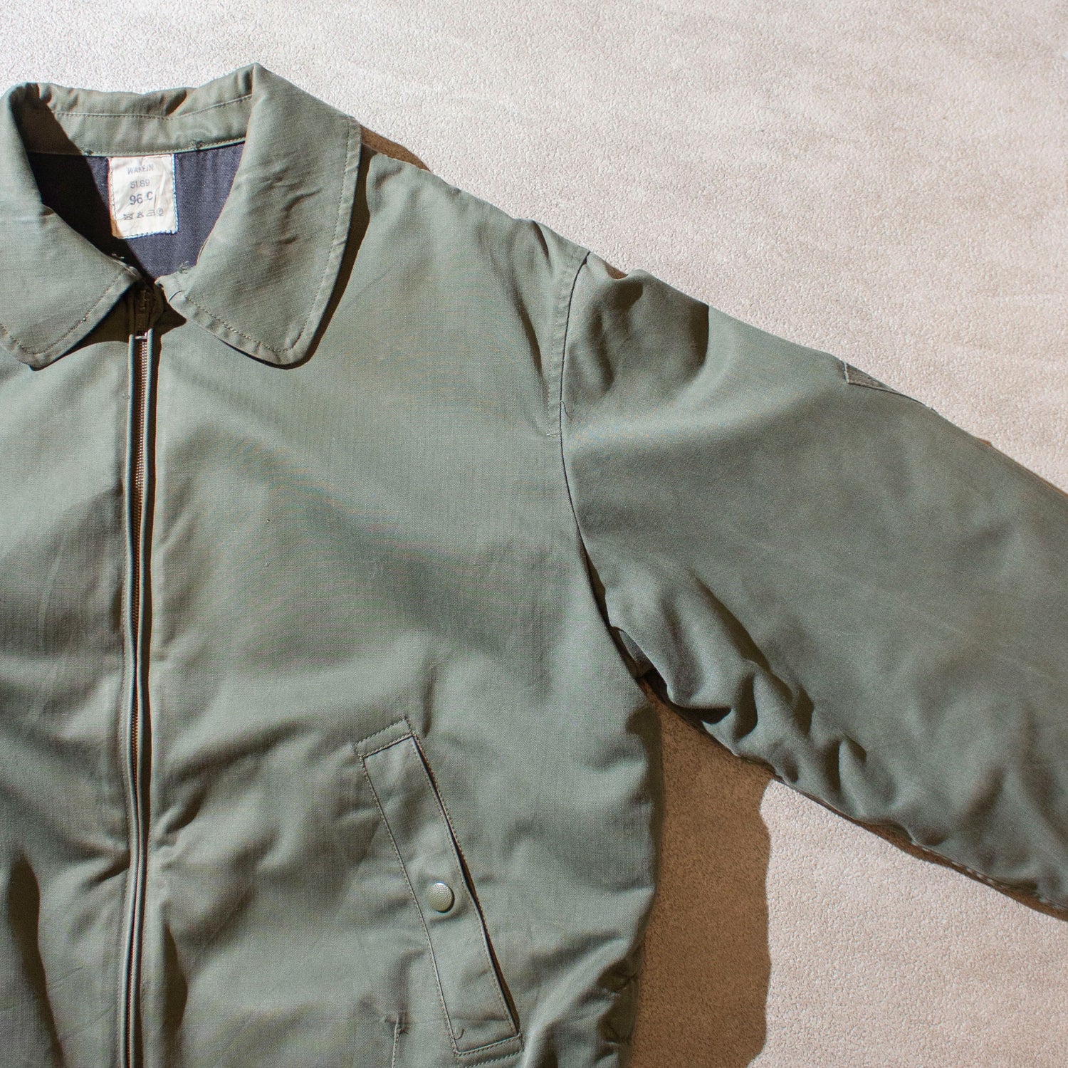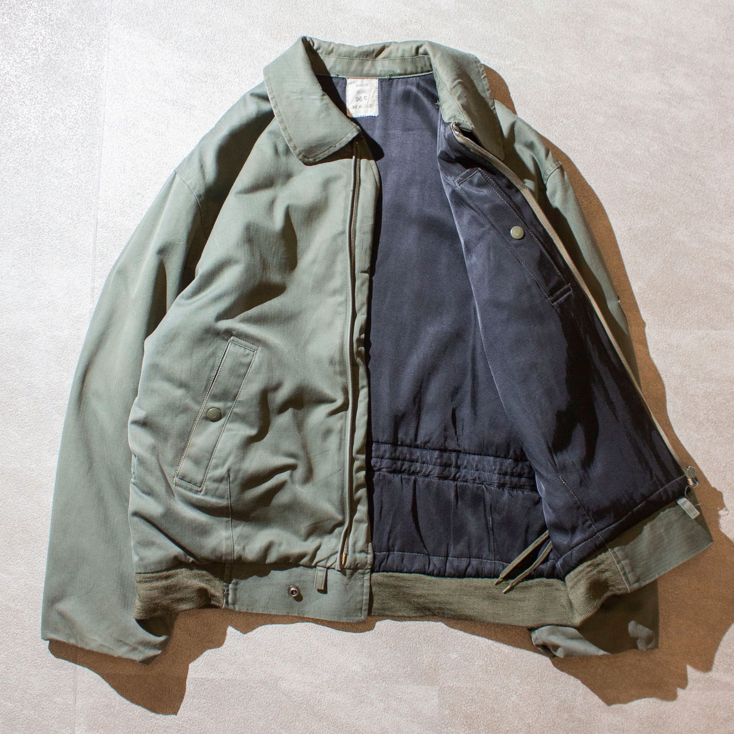アメリカ空軍の名作B-15フライトジャケットをベースに、フランス軍またはヨーロッパ民間向けに製造されたと思われる1着。ナイロン素材の多いアメリカ製に対して、こちらは高密度のコットンヘリンボーンツイルを採用。無骨ながらも上品な光沢があり、着込むほどに深みのある表情に変化していきます。