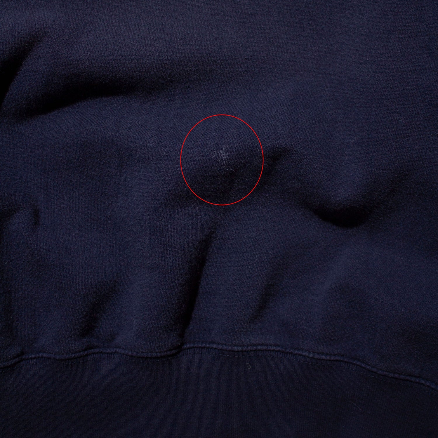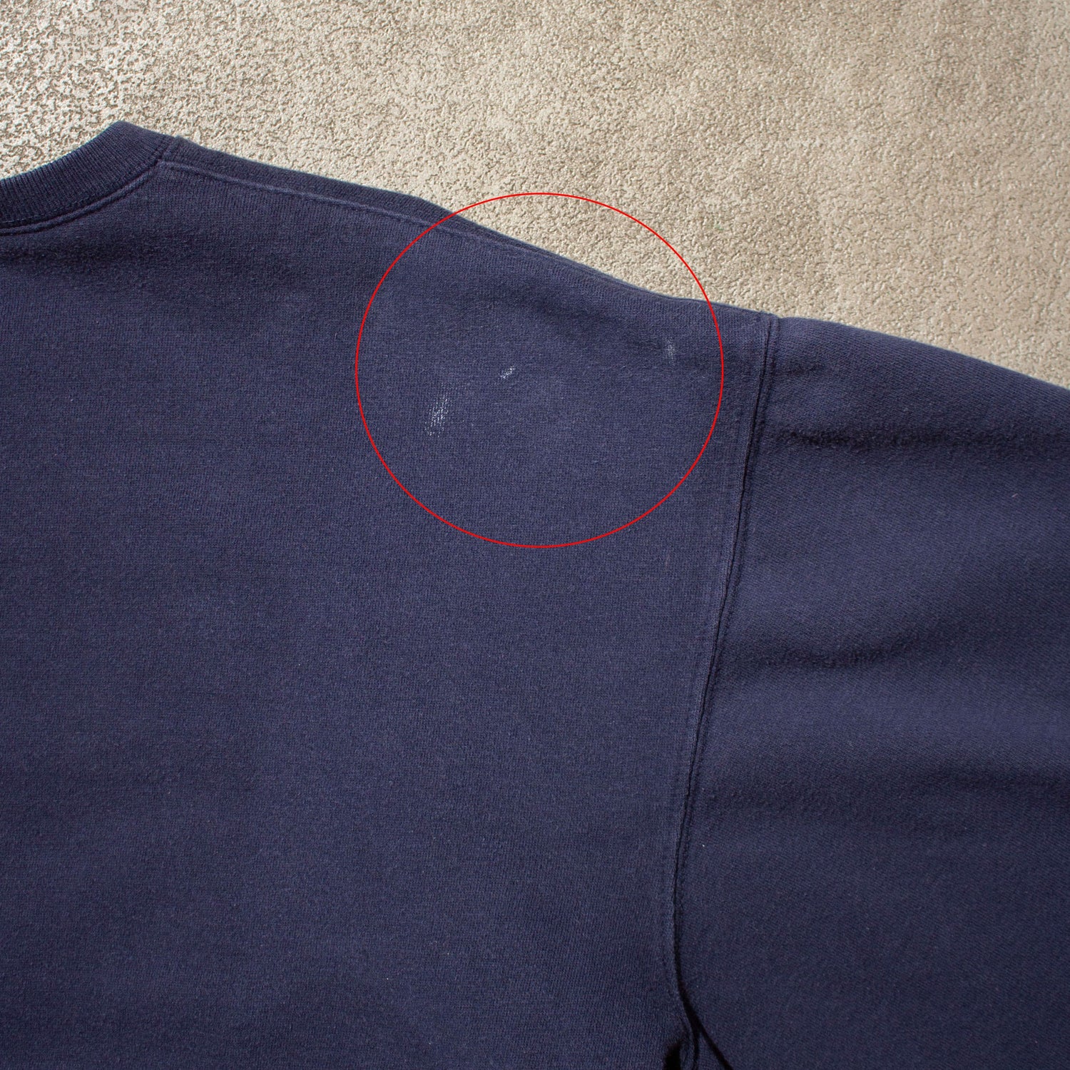 ディテールは50年代のヴィンテージスウェットに見られる前Vガゼット仕様。着丈は当時のスウェットらしくややコンパクトで、肩幅・身幅は広め、短丈というバランス。いい意味で野暮ったさのあるシルエットで、力の抜けた雰囲気が魅力です。褪せたネイビーの色味も非常に雰囲気が良く、着込まれたことで生まれた自然なフェードがこの年代ならではの表情です。シンプルな無地スウェットだからこそ、シルエットと生地感の良さが際立ちます。