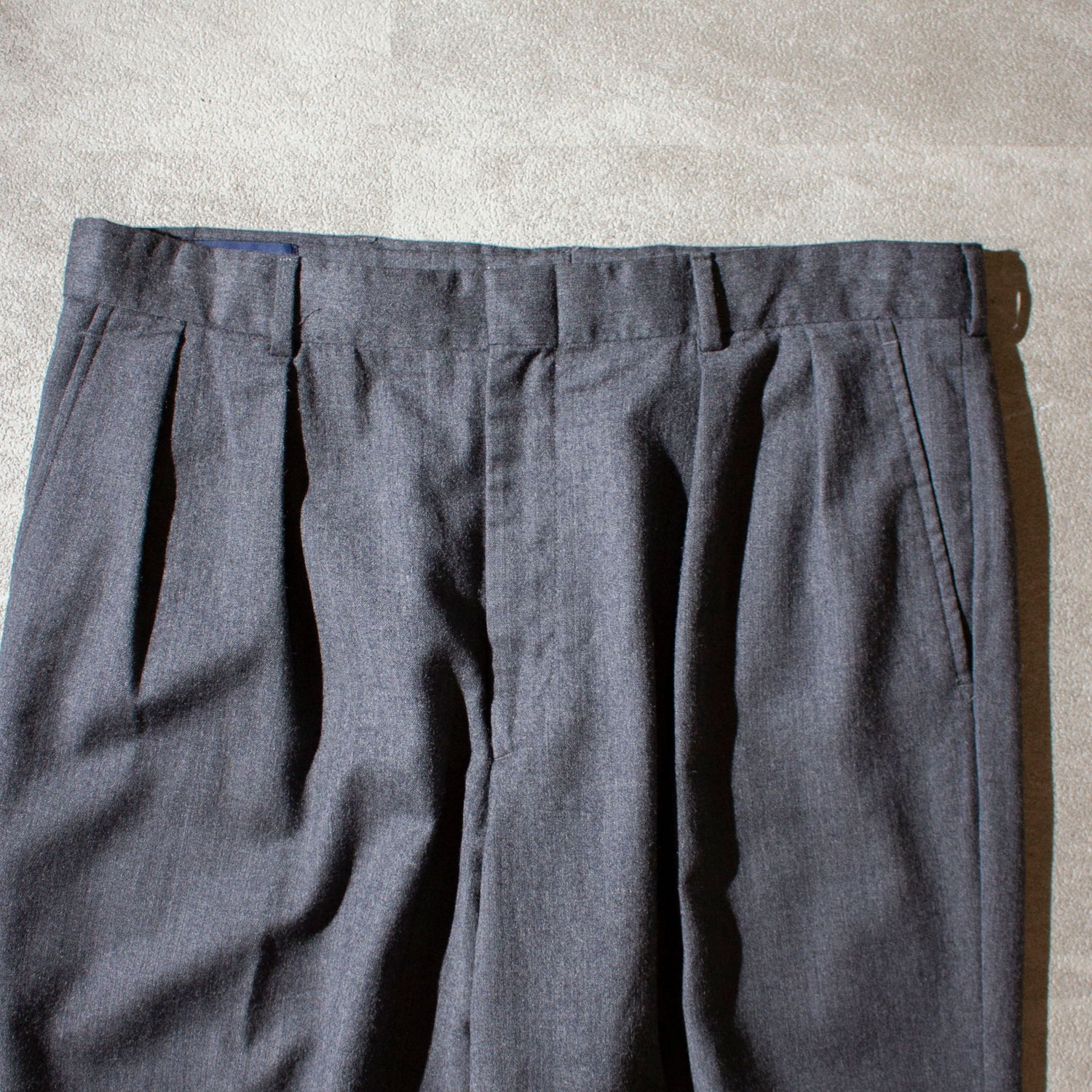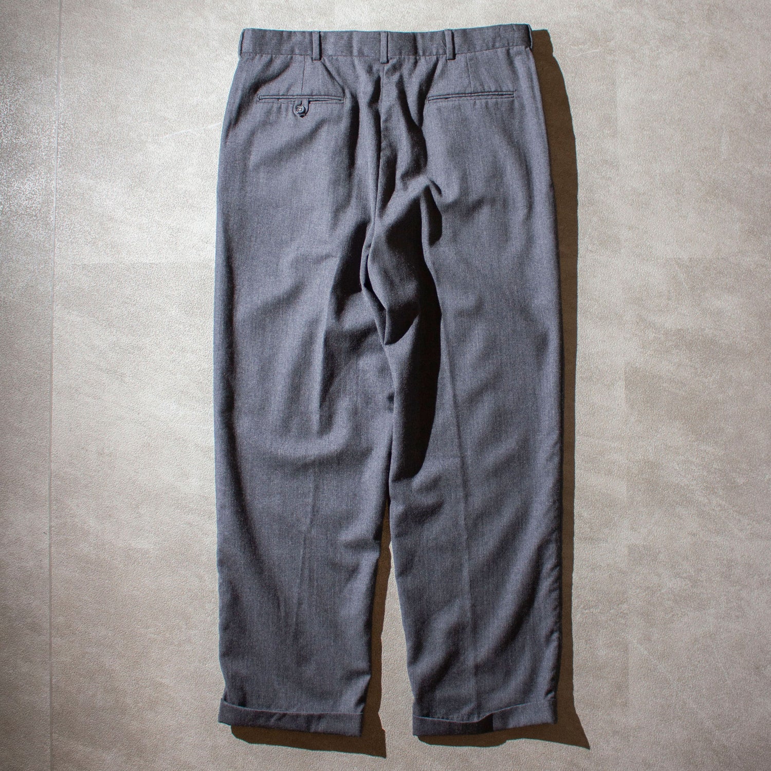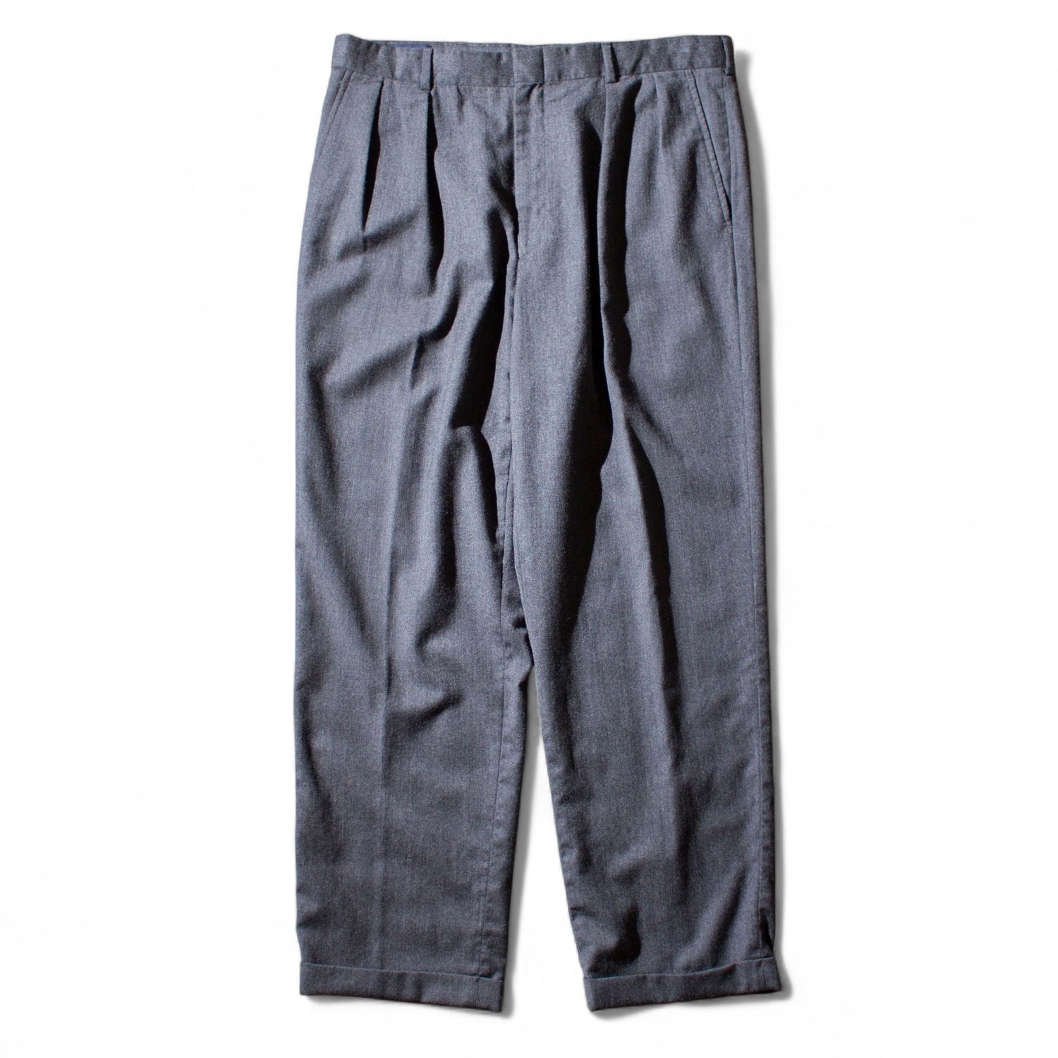 Lands'Endのウールスラックス。ダークグレーのウールフランネル生地が渋すぎる一本です。タックはインタック仕様で、立体的なシルエットが魅力。タックインスタイルでも程よくアクセントになってくれます。