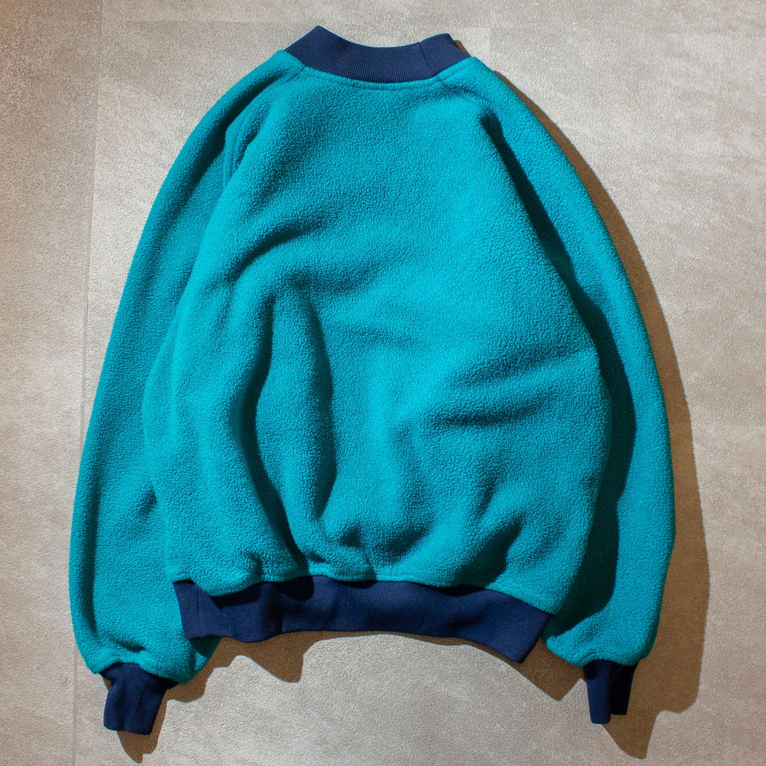 こちらはスウェットライクに着られるフリーストップス。程よくボリュームのあるフリース素材を使用し、軽くて暖かく、柔らかな肌触りが特徴です。首元はモックネック仕様で、リブの切り替えが効いたクラシックな雰囲気。短めの着丈に対して身幅・アームホールはしっかり広めに取られ、丸みを帯びたシルエットです。