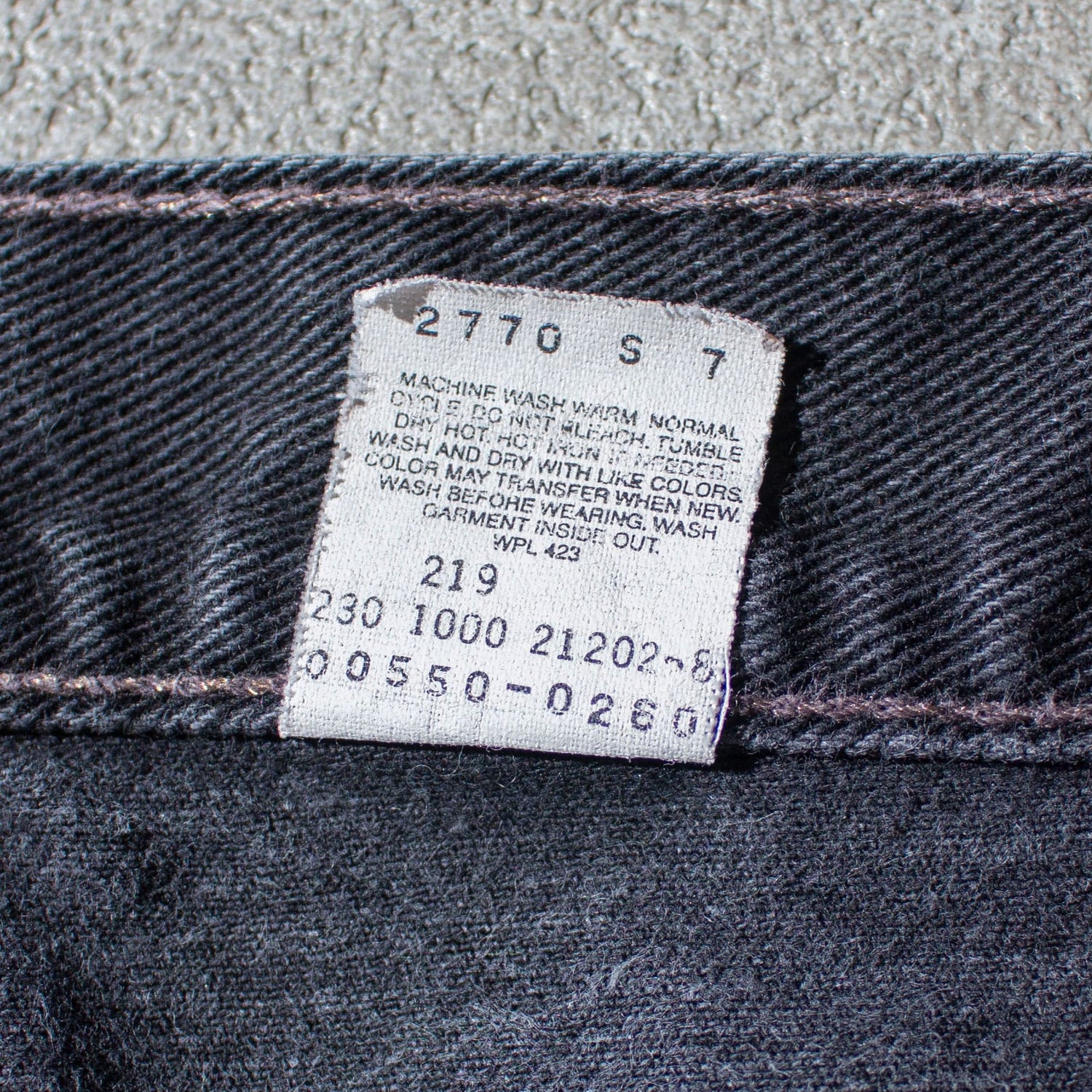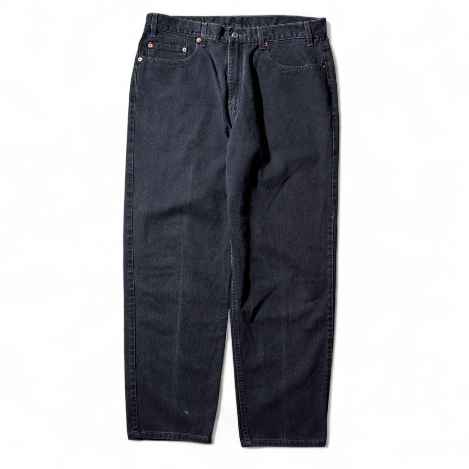 Levi’sのワイドデニムの品番550のブラック。タグに”TAPERED”と表記の入らない個体で一般的な550に比べテーパードが少なくストレートに近いシルエットで穿いていただけます。