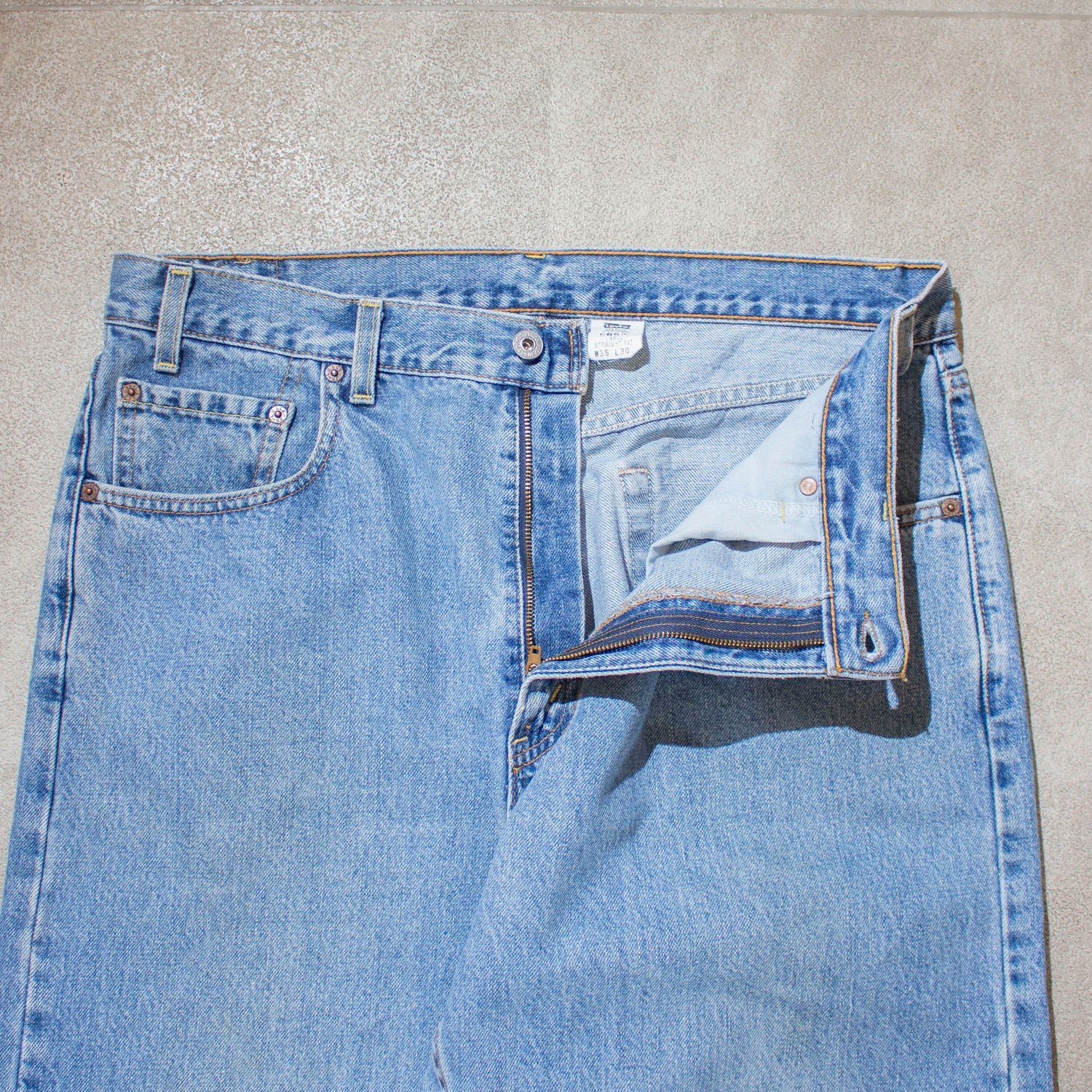 547の最大の特徴は5ポケットデニムではあまり見かけないタック入りの仕様です。タック入りデニムはSilver Tabでは見かけることがありますが、メインラインで採用されている点はかなり珍しいポイント。色味は色落ちの進んだ90年代らしいブルーで、雰囲気も十分。レングスは既に直されており購入後すぐに穿いていただけます。