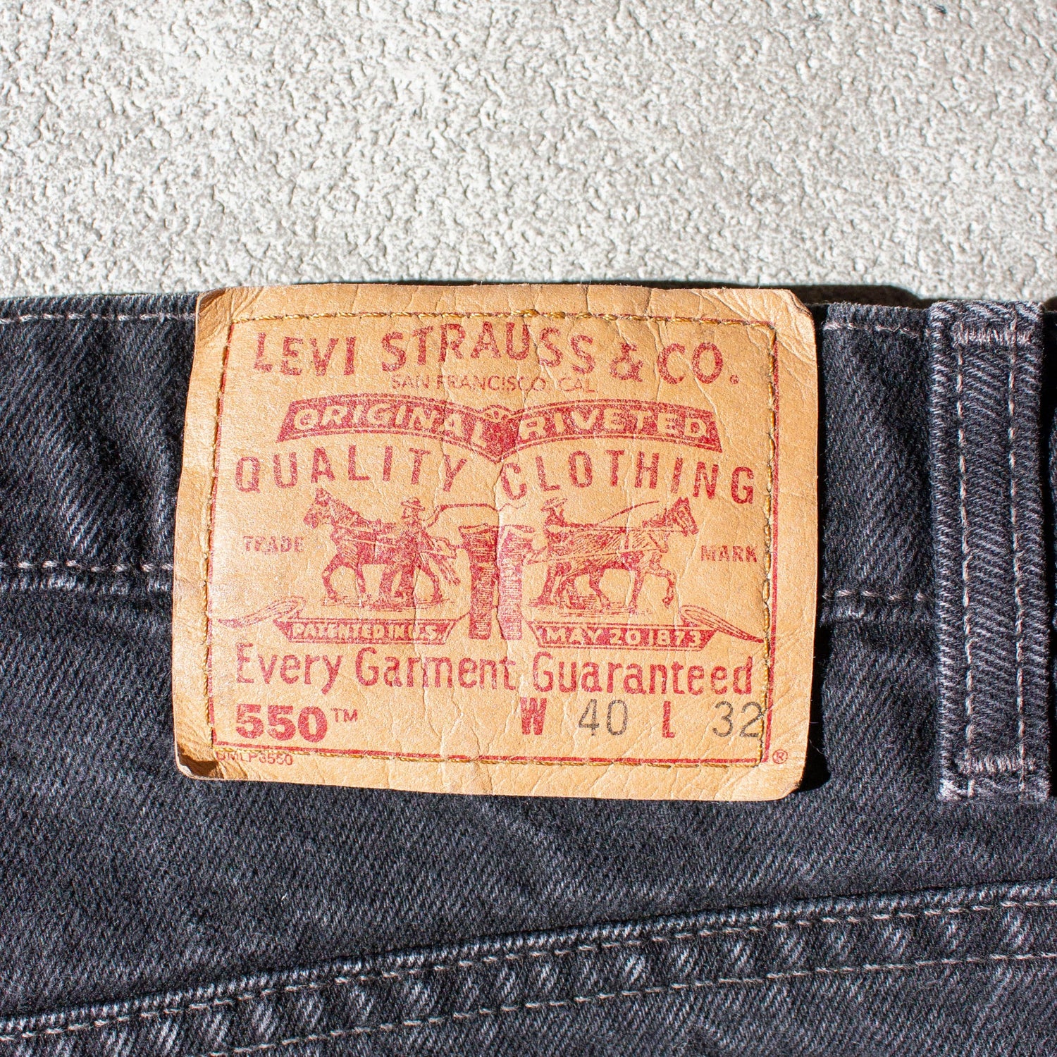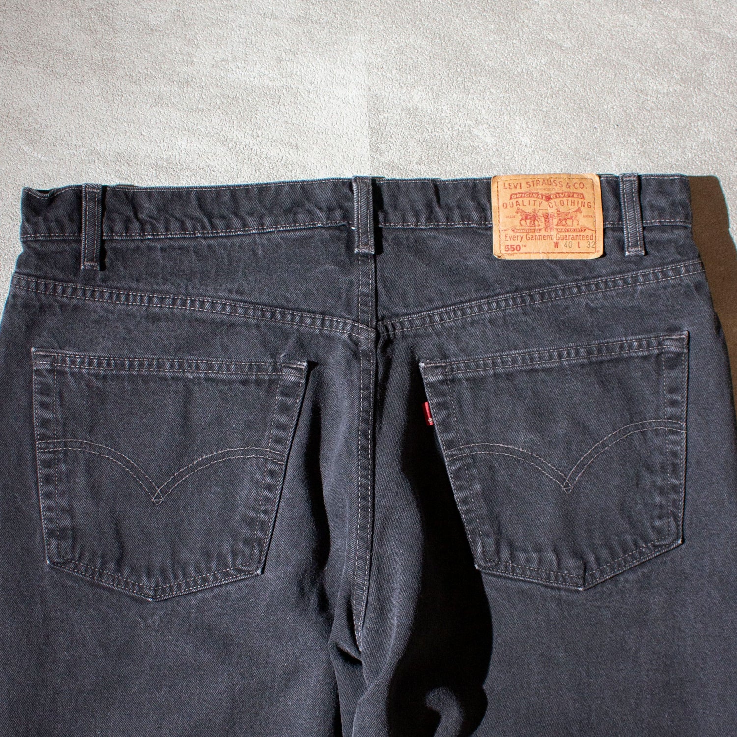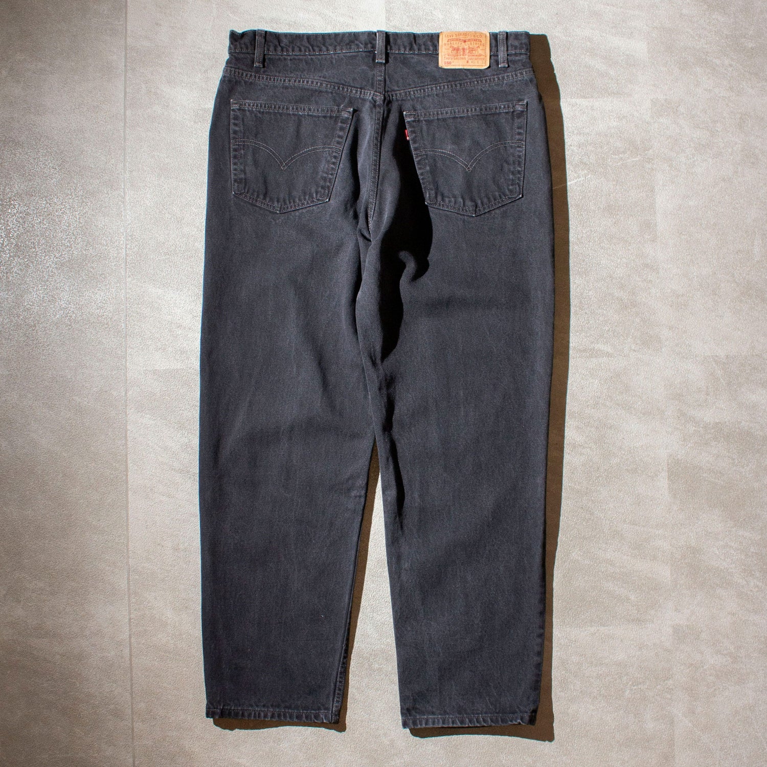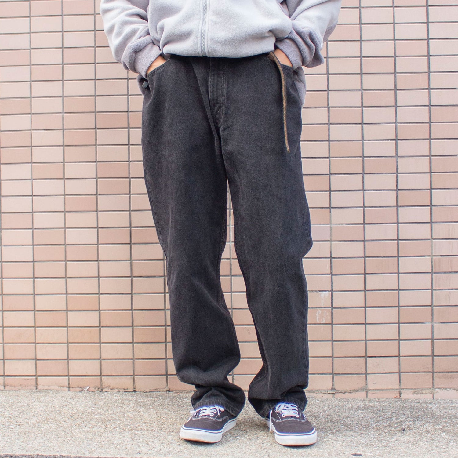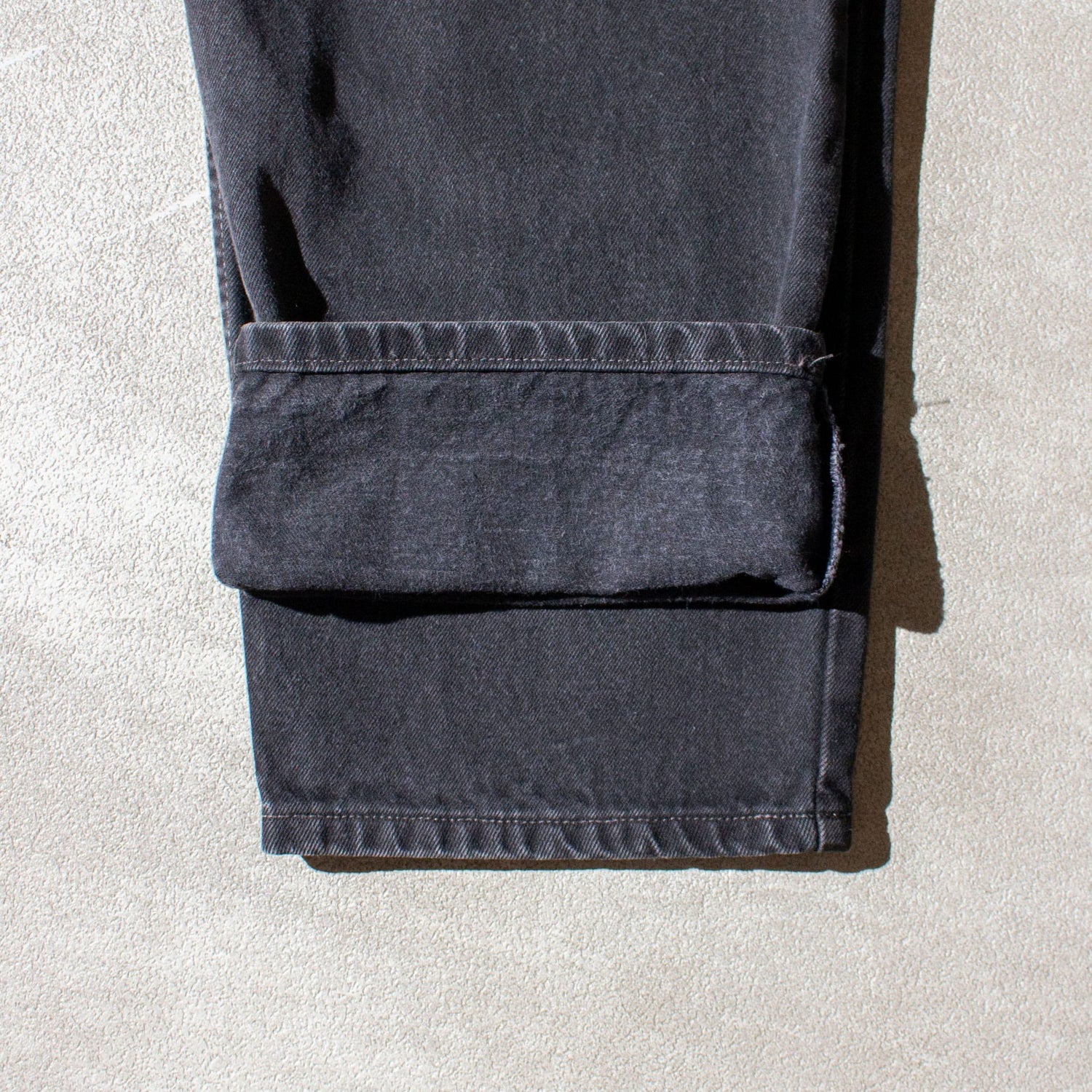 Levi’sのワイドデニムの品番550のブラック。タグに”TAPERED”と表記の入らない個体で一般的な550に比べテーパードが少なくストレートに近いシルエットで穿いていただけます。ルーズすぎずバランスの取れたシルエットが魅力です。