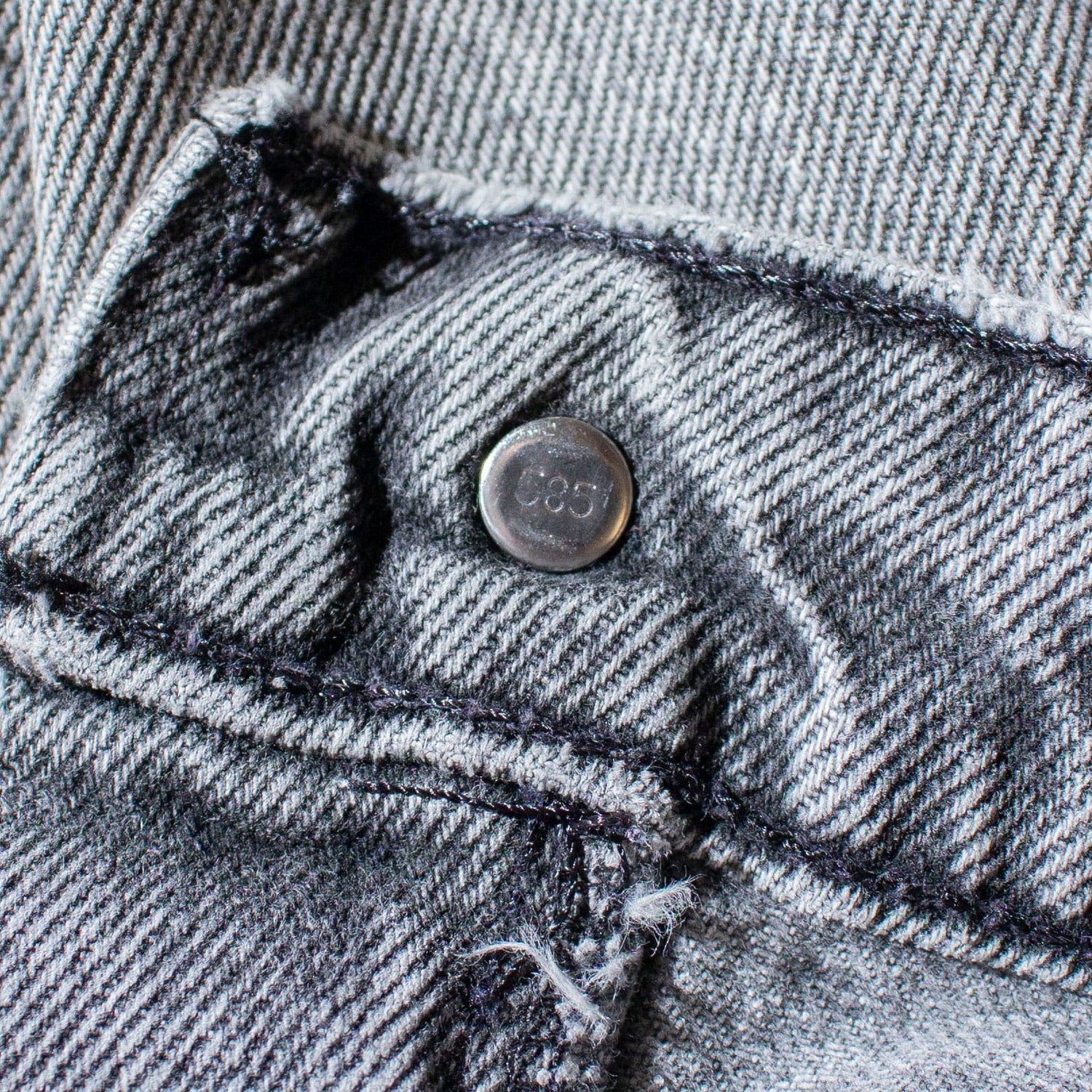 スッカスカの色落ち&リペアの跡など雰囲気抜群のブラックデニムです。個人的にすごく欲しいです、、、
