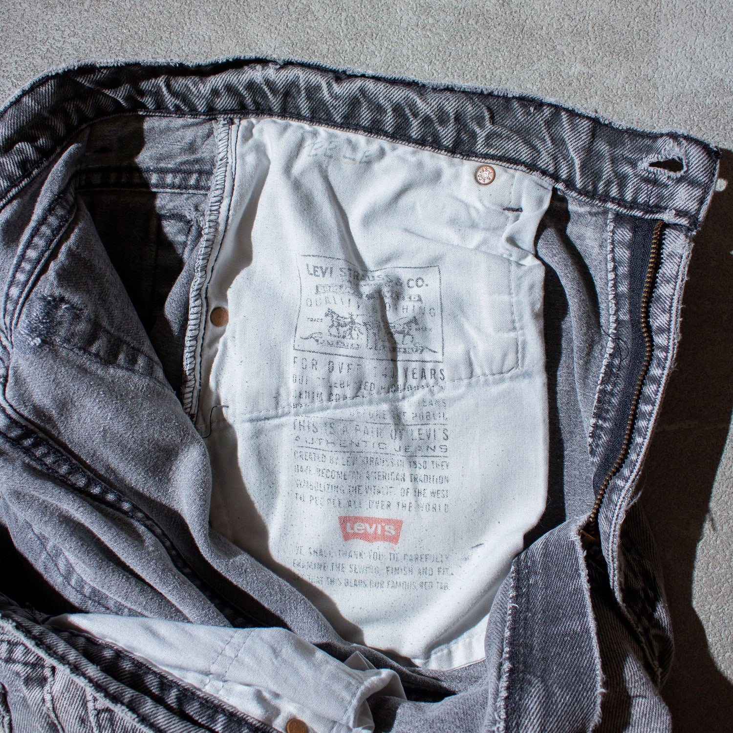 Levi’sのワイドデニムの品番560のブラック。ゆったりとした太目の太もも回りから裾に向けてテーパードするテーパードシルエット。