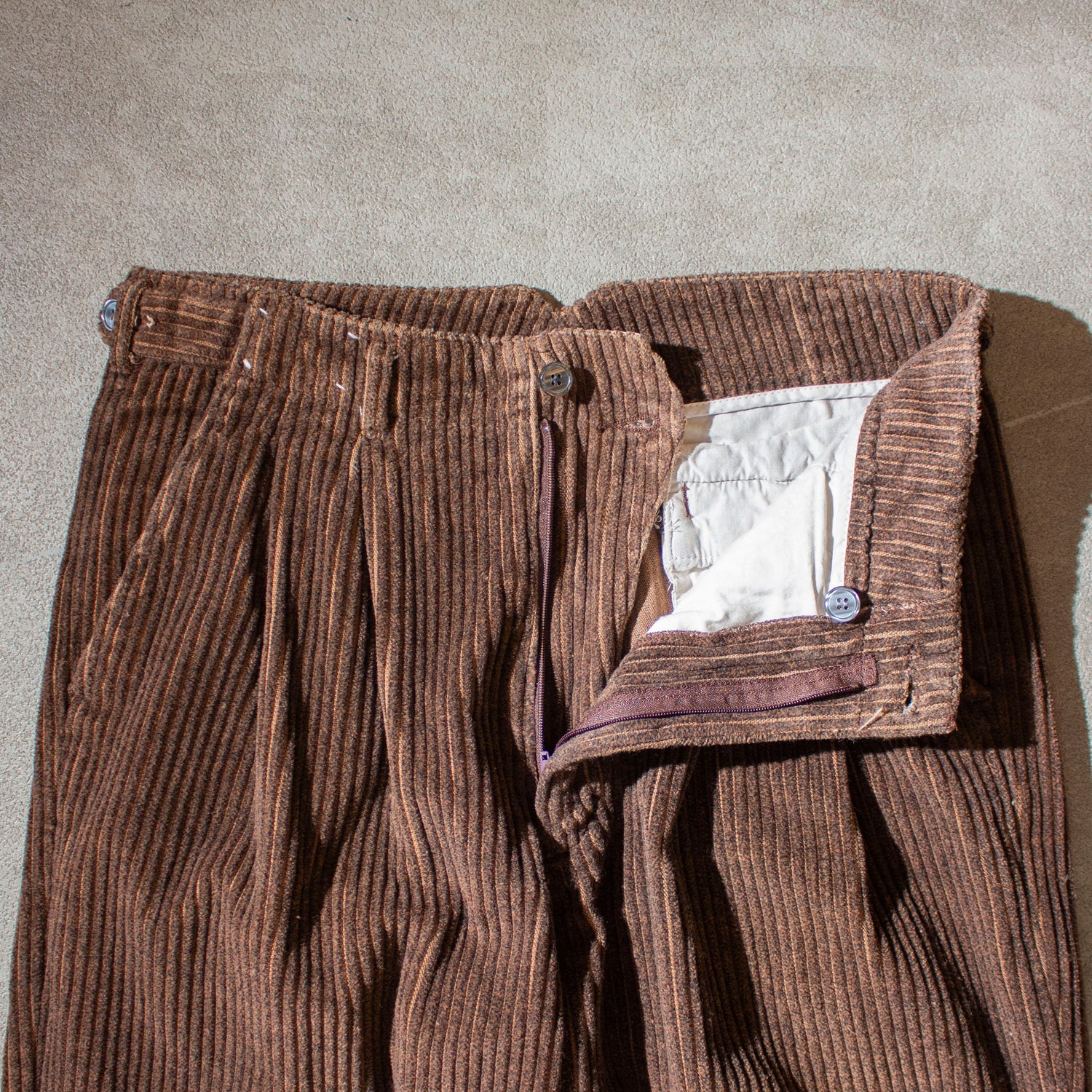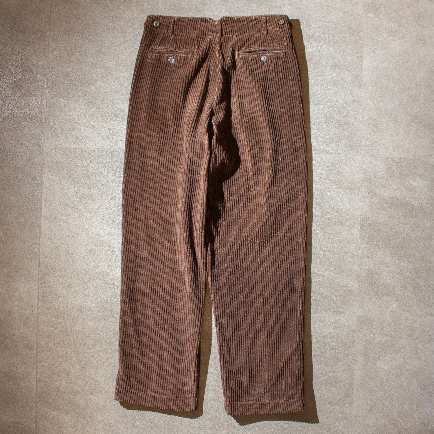 こちらは同ブランドのコーデュロイパンツ。季節感のある毛羽感と温かみが魅力の太畝コーデュロイを採用。細身ながらワタリにゆとりを確保したシルエットで、タイトになりすぎず自然なリラックス感があります。