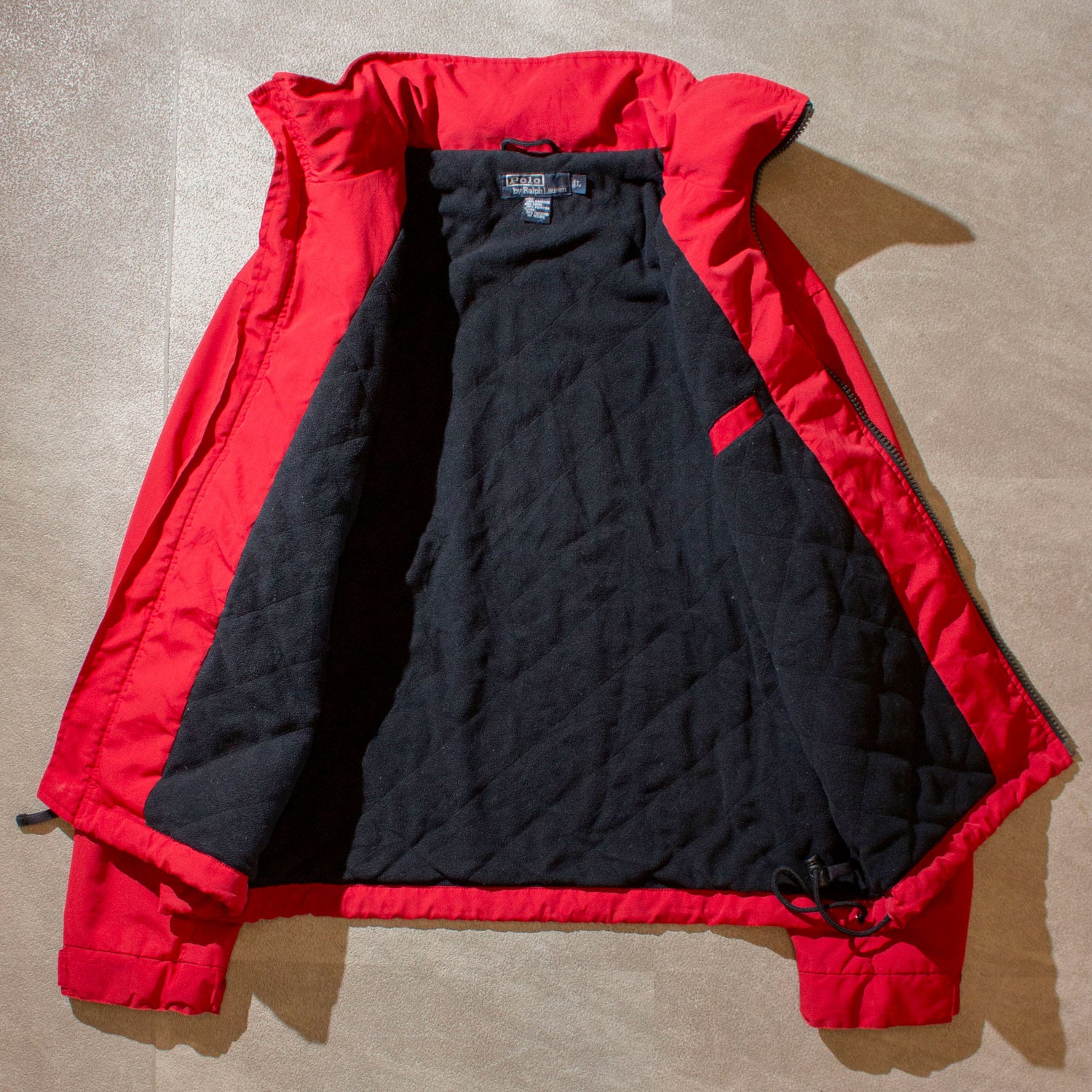 ラルフローレンのクラシックな雰囲気のスタンドカラーブルゾン。軽やかでハリのあるポリエステルシェルに、裏地はフリース張りで薄く中綿入り。軽い着心地ながらしっかりと保温性も備えた、季節の変わり目に最適な1着です。着丈はやや短めのボックスシルエット。ゆったりとした身幅ながら、裾のドローコードを絞ることでコンパクトな丈感にも調整可能です。
