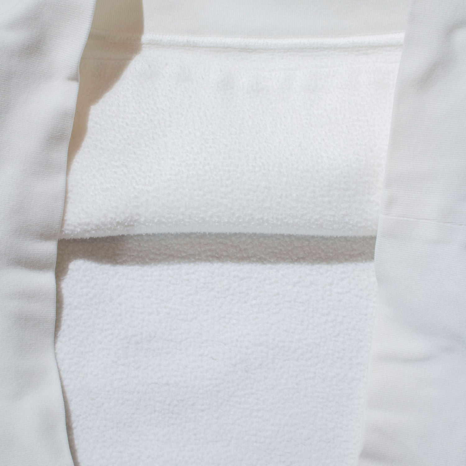 ゆったりしたサイズ感ながら、野暮ったく見えないバランスの良い形。短丈気味のシルエットなので太めのパンツとも非常に相性が良く、シンプルに合わせるだけで雰囲気が出ます。生地はChampionのリバースウィーブを思わせるようなしっかりとした肉厚スウェット。コットン主体のガシっとした質感で、タフに着込めるタイプです。胸にはネイビーのポニー刺繍入り。クリーンなホワイトボディにさりげなく映えるワンポイントです。フードの立ち方や形も良く、フーディーとしてのバランスも優秀。