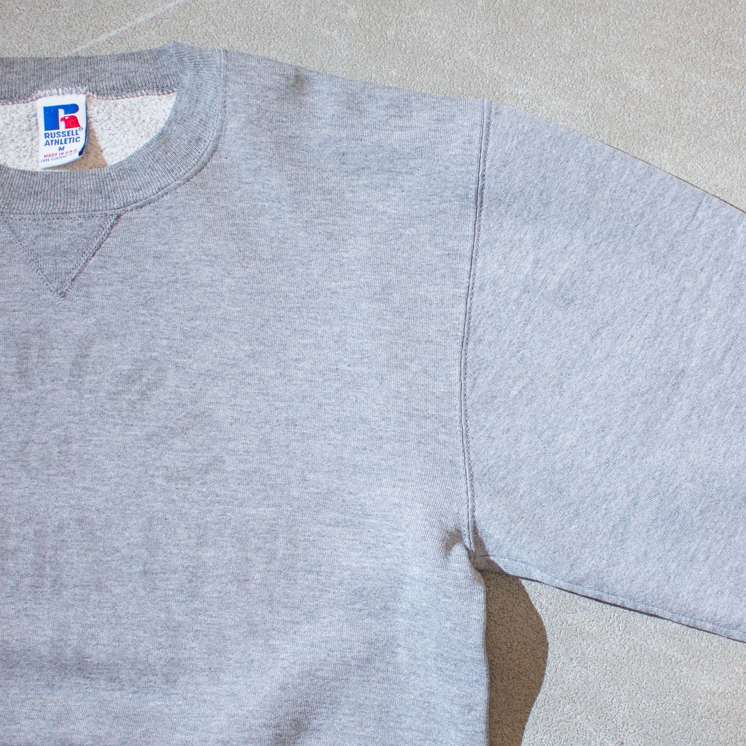 RUSSELLの定番クルーネックスウェット。身幅広め・着丈短めのボックスシルエットに加え、腕周りにもゆとりがあり、ラフに着られる1着です。