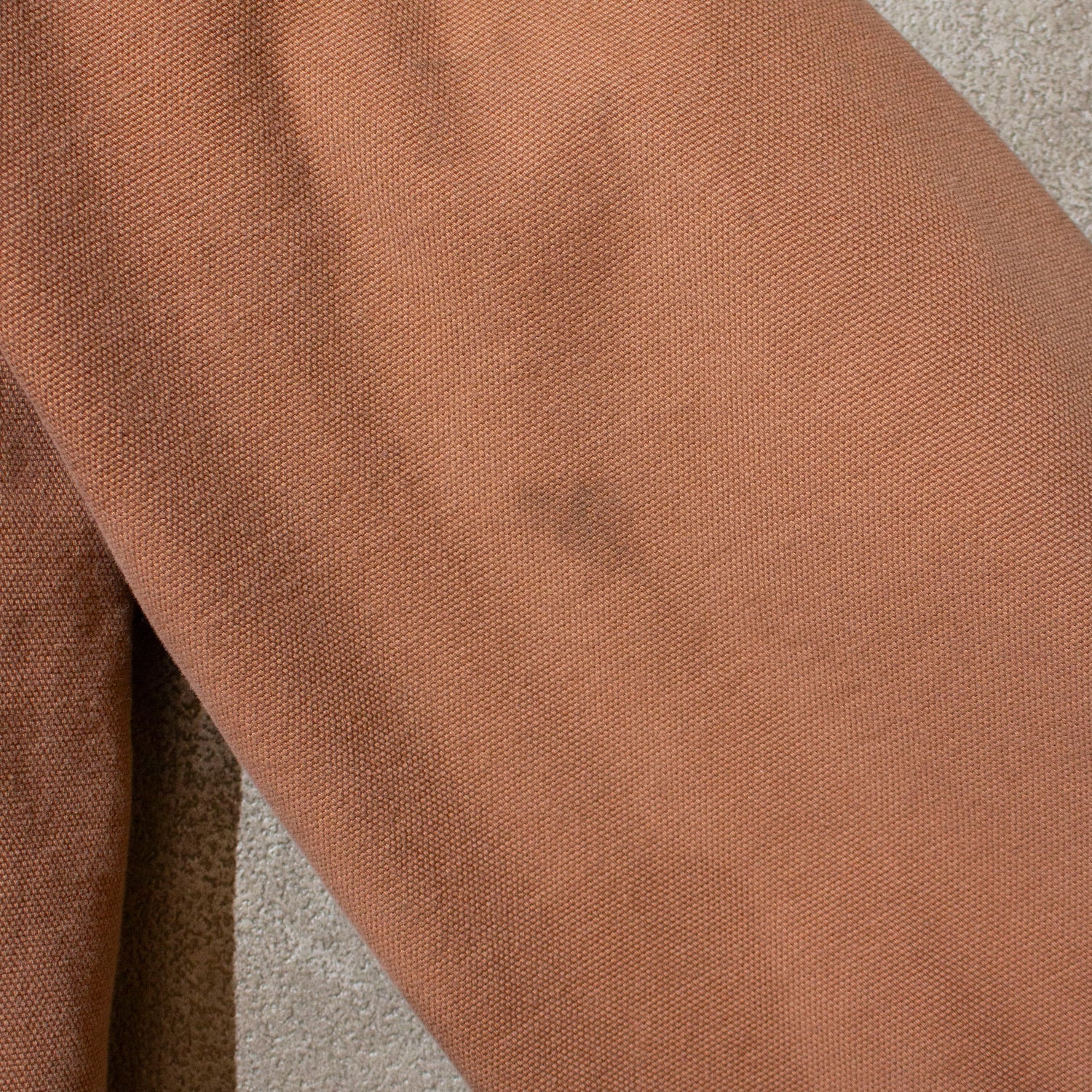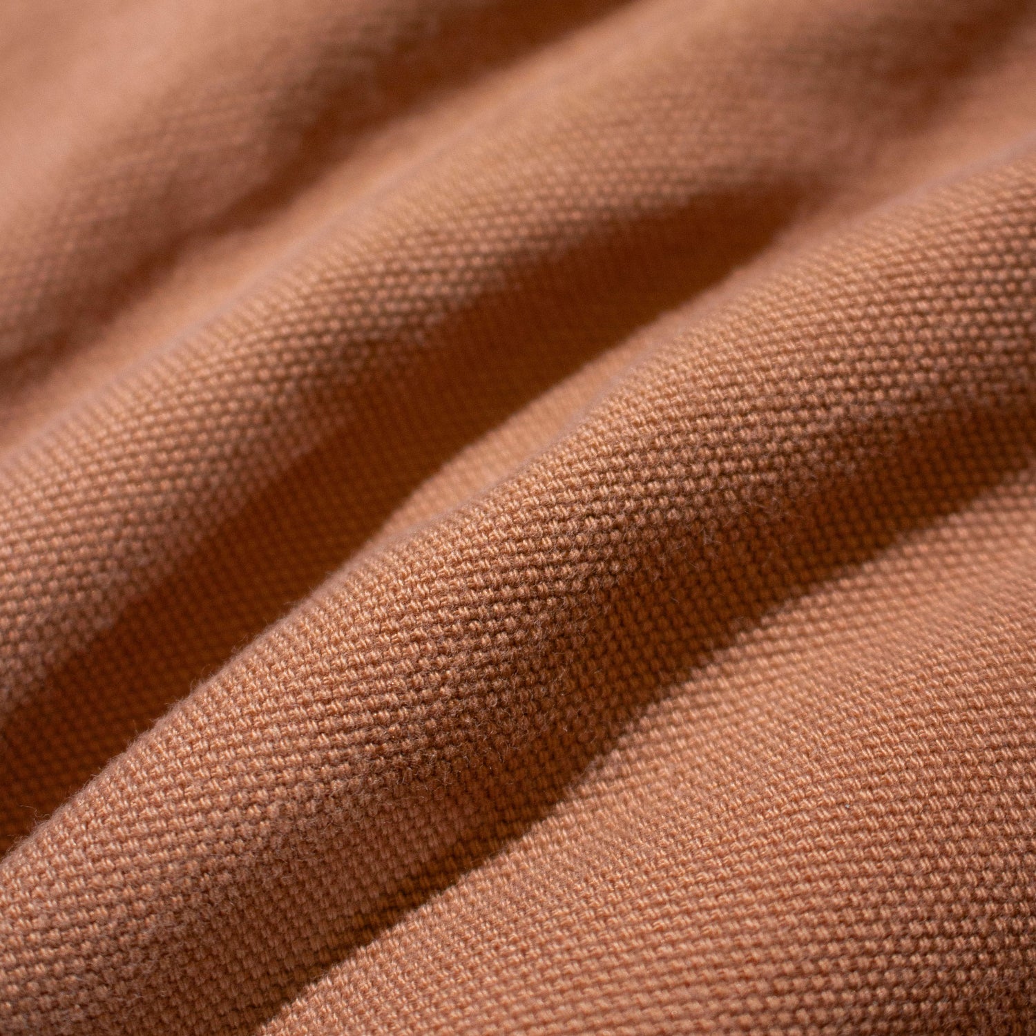 こちらの生地にはダック特有のガシッとした硬さを抑えた、柔らかさのあるコットンダックを使用。大きめに着用しても肩のラインが自然に落ち、無骨さはありつつも着用時のシルエットは非常に綺麗です。身幅はしっかり広めながら、丈は短すぎず長すぎないバランスで、いわゆる短丈に抵抗のある方でも取り入れやすいシルエット。