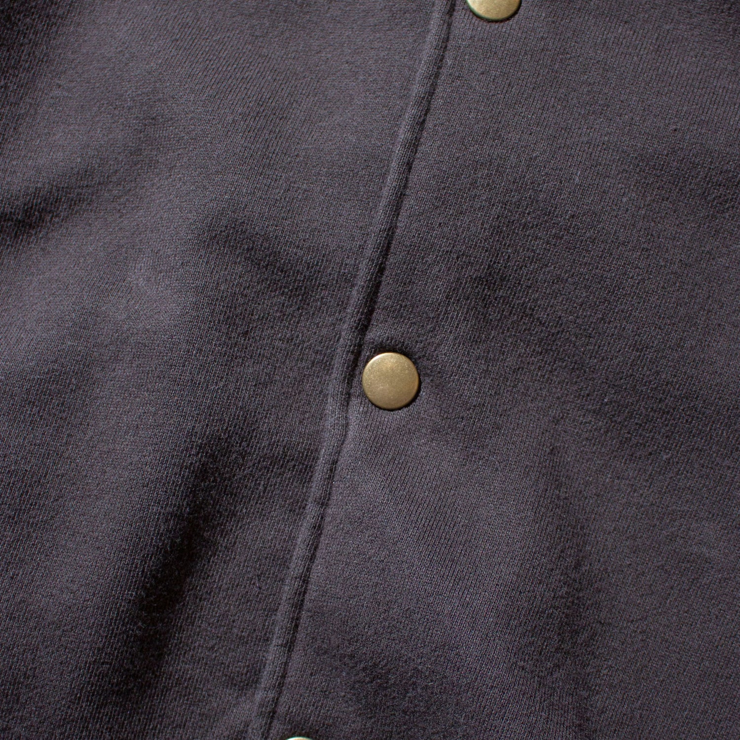 また、ウールのカーディガンだと着用できるシーズンが短くて気軽に洗濯乾燥するのにも少し気を遣ってしまうので、めんどくさがりの僕らには雑にガシガシ着用できるタフなスウェットカーディガンがすごくちょうどよかったんです😃