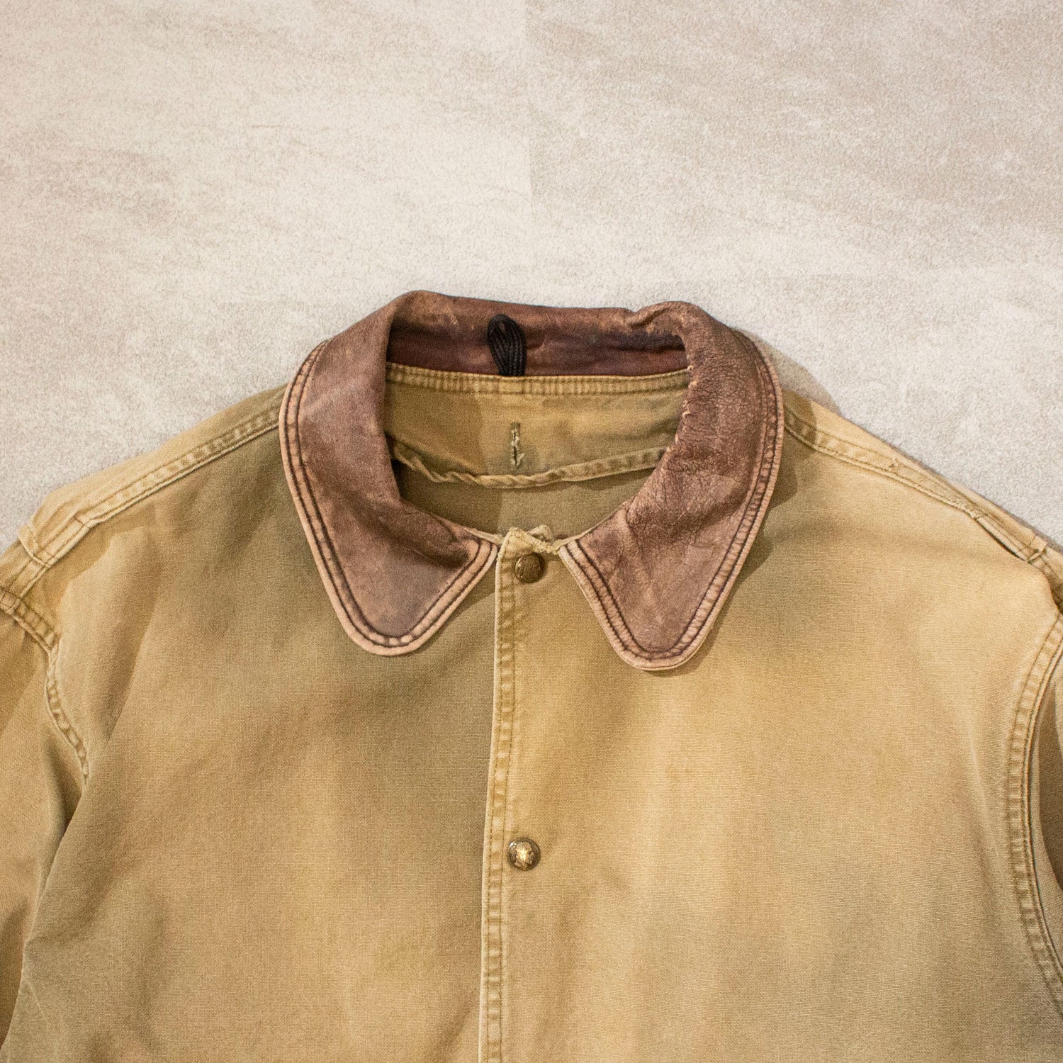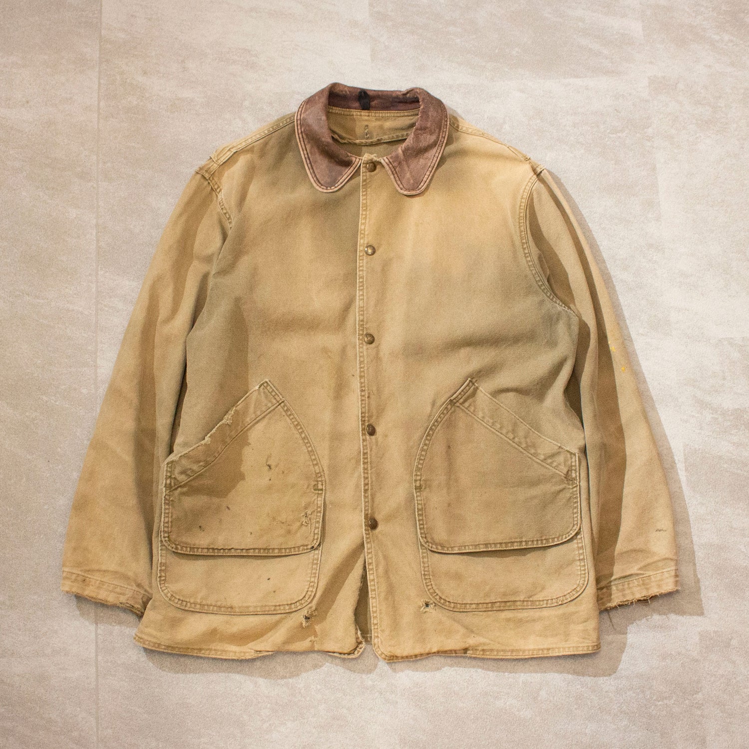 ウールリッチのハンティングジャケット。定番の形で様々なアウトドア系ブランドが出している形です。全体的にフェードした色味とダメージ具合が雰囲気抜群な一着。年代も古いものではないのでここまで雰囲気のいいものもなかなか少ないかと思います。サイズ感もガバっと着れるサイズ感なのでインナーもたくさん着込めるしシャツ感覚でも着用できます。古いものに比べてライトオンス目のダック地なので長いシーズン着用できそうです。