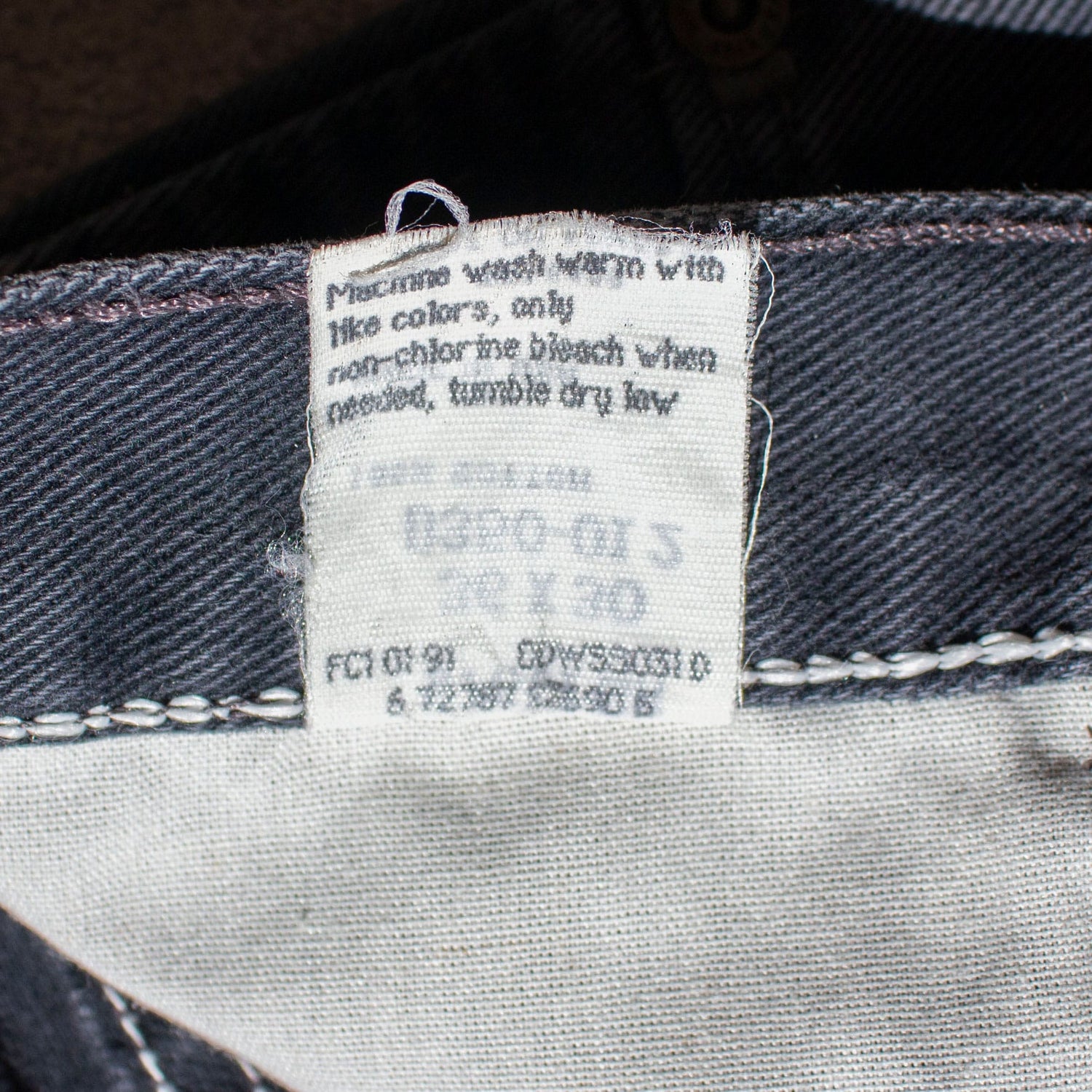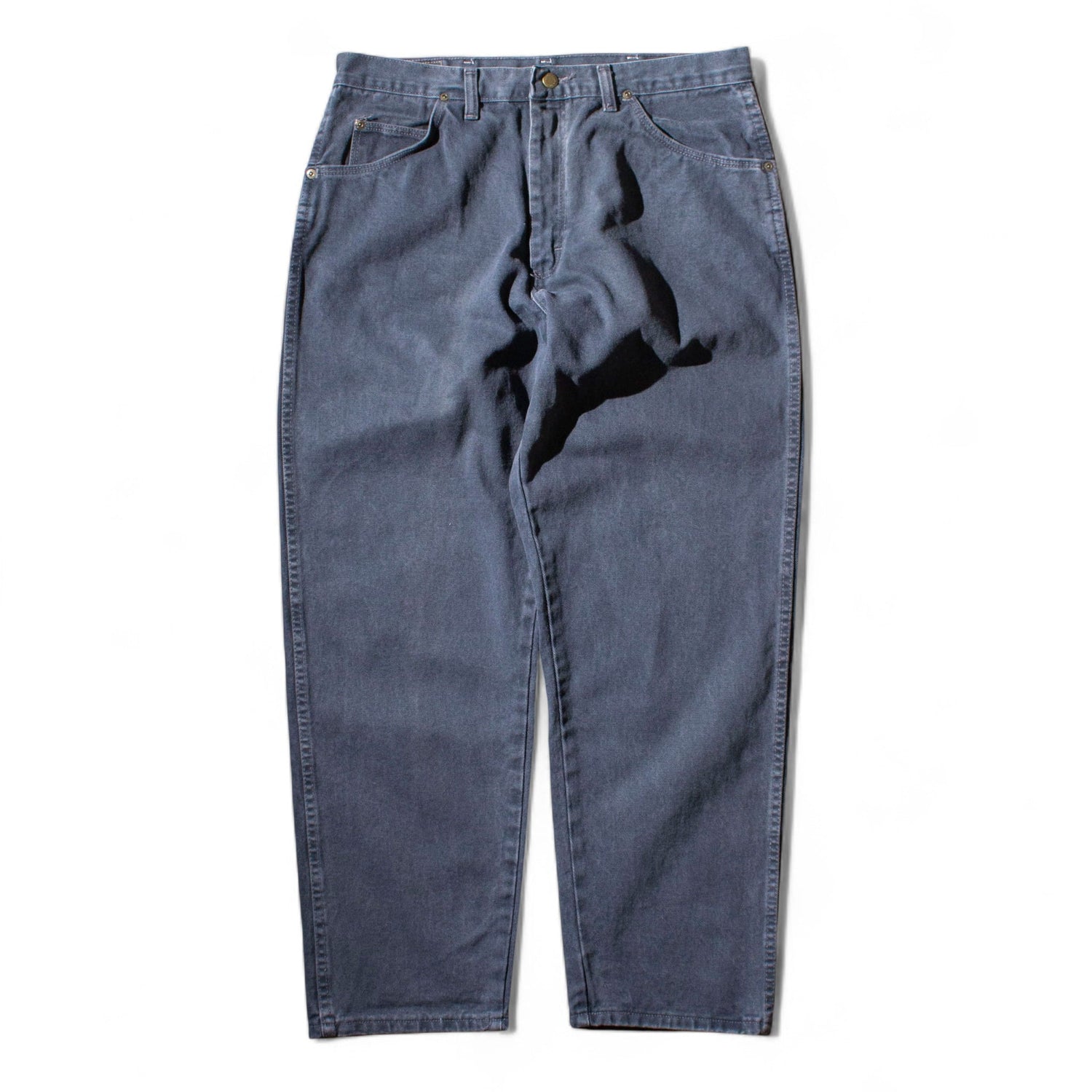 Wranglerの定番モデル、97601。ワークウェアのDNAを受け継いだ「Five Star Premium Denim」シリーズの1本で、Levi’sでいうと550に近いシルエットを持つリラックスフィットモデルです。腰の位置で穿いても自然なボリューム感が出る、まさにアメリカンデニムらしいルーズなバランスです。色味はブラックというより、程よくフェードしたグレー寄りのトーン。ワーク感のある無骨さと、フェードによる柔らかい雰囲気が両立しています。