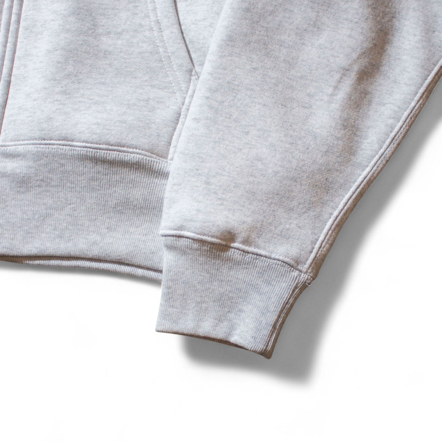 普段使いしやすいアッシュグレーとグラフィックが映えるキャッチーなネイビーの2色展開。パーカーは厚手の裏毛仕様で保温性が高く、今時期はアウターとしても活躍してくれます。